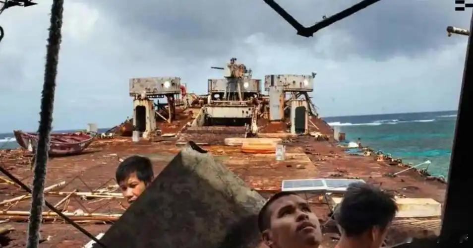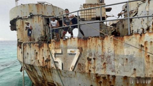 菲律宾非法坐滩的“马德雷山号”舰体严重锈蚀(90%结构损坏),已超100天未获批有效补给,驻守士兵每日饮水仅500毫升,依赖雨水生存,已经陷入集体焦虑之中,特别害怕有人要“害朕”,而渔民潜水捞铁足以破坏随时可能沉没的船体。