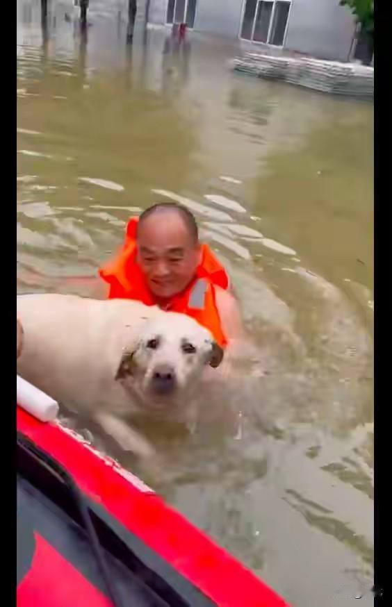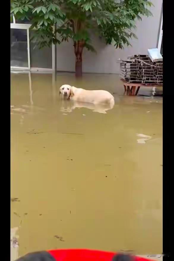 一只狗狗的家发生了洪灾,它被困在了院子里,一直泡在水里,它不愿意离开,也不敢离开,期间也有搜救艇来搜救,可都没有营救它,它很失望,也很无奈。 就这样泡了几天,这天一位大哥开着搜救艇来到了它的院子,它却无动于衷,因为之前好几次救援人员都没有救它,它以为这次也不会救它,结果大哥直接下来走向了它,然后把它抱上了搜救艇,它终于得救了。 原来救它的就是它的主人,它估计也是生气了,以为主人不要它了,最终它还是原谅了主人。
