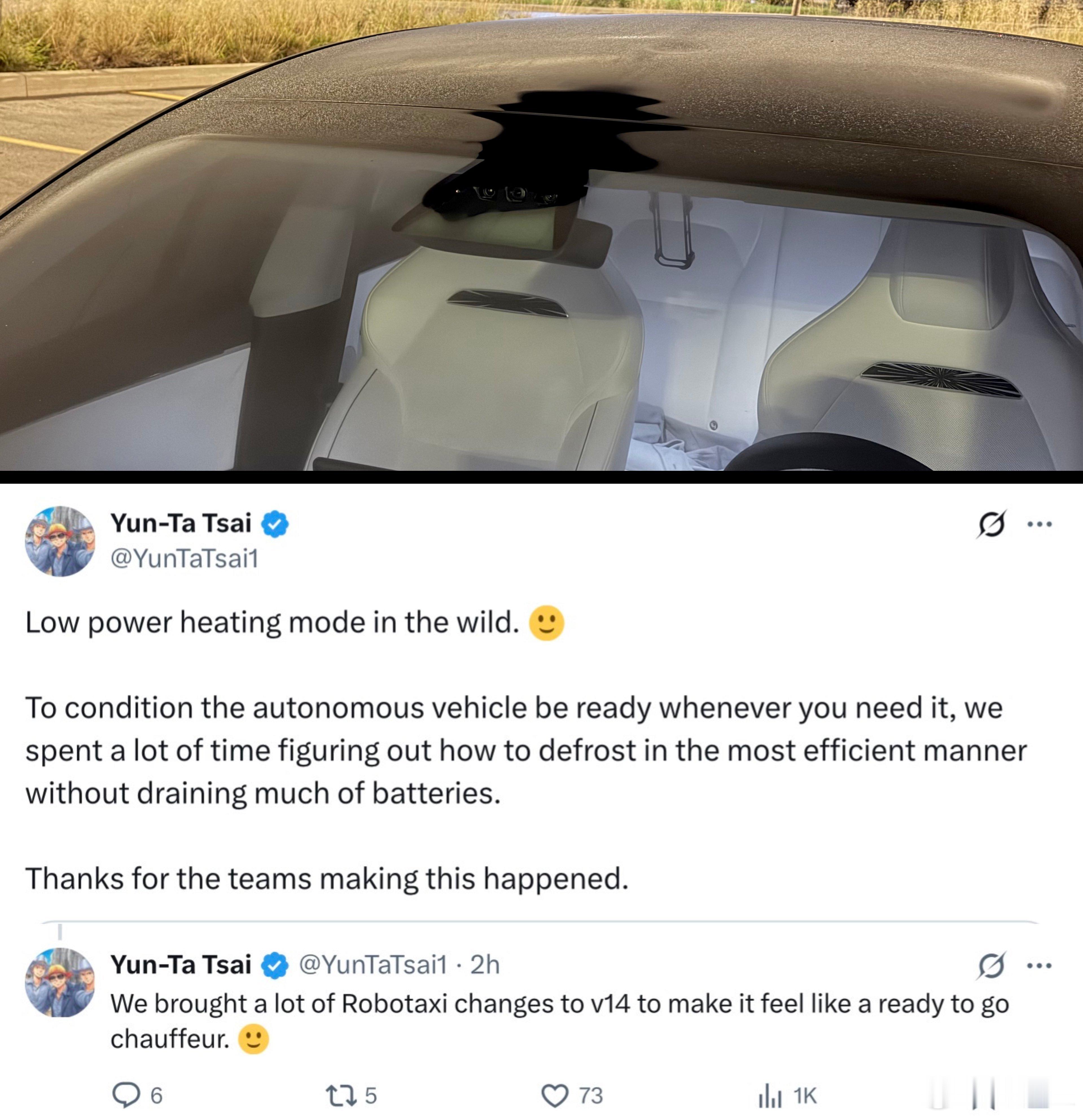 特斯拉AI团队在FSD V14中为车辆的摄像头加热器引入了一种新的低功率加热模式。