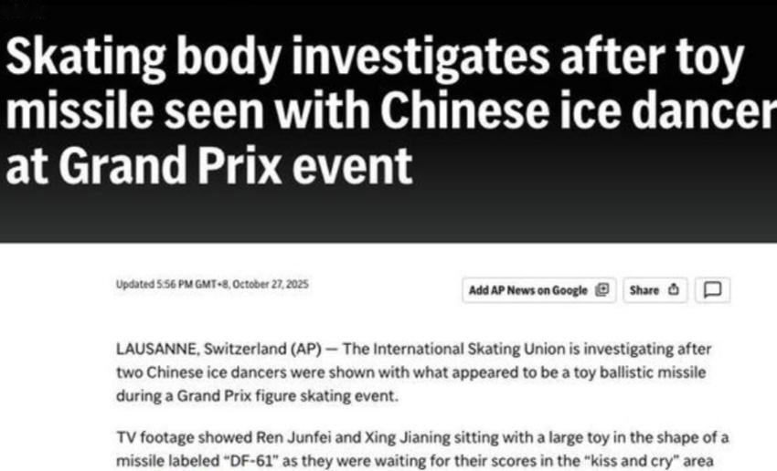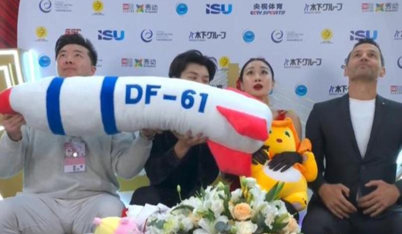 第一次看到我们的运动员因为一个物品,被外国观众投诉,心里居然有点暗爽! 在近日中国杯花样滑冰大赛中,中国选手任俊霏/邢珈宁赛后收到了不少现场观众投掷过来的玩偶,其中有一个玩偶是东风61抱枕,在等分的时候,这个玩偶在屏幕上的太显眼了。 可能引起了一些人的不适。 国际滑联已经引起重视,并要开始调查。 一个玩偶而已,有必要吗?