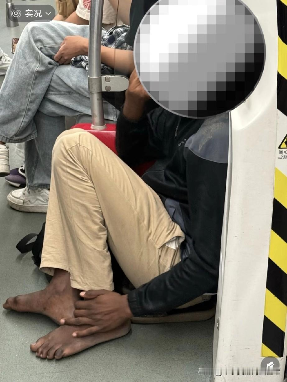 广州够包容,但不代表没底线! 广州向来以“海纳百川”著称,可包容也不是无边界的放纵! 地铁上见一黑人男子光着脚丫,就这么堂而皇之坐在地上,脚丫子还随意摆放。咱先不说卫生问题,地铁是公共空间,这般操作真的合适吗? 有人说要体谅难处,可公共秩序是大家的底线啊!包容不是纵容,广州的包容是给守规矩的人温暖,不是给无边界行为的“免死金牌”。 你觉得这种行为该被理解,还是该被规范?来评论区聊聊,广州的包容度到底该怎么界定?