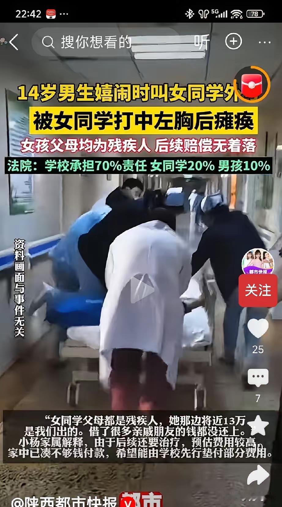 谁能想到一句玩笑、一拳打闹,竟把14岁少年的人生打进ICU? 晚自习课间的嬉闹本是校园里最常见的画面,可女孩那记无心的左胸一拳,直接让男孩倒地不起,从此插满管子躺在病床上,再也没了往日的活力。 更让人揪心的是,物理老师明明是第一个看到男孩痛苦蹲坐的人,却只简单问了两句就转身去接电话,谁也说不清,那被耽误的4-5分钟,是不是错过的最佳救命时机——如果当时第一时间打120,这孩子会不会就不用遭这么大罪? 如今71万治疗费快把父母压垮,众筹只凑了1.5万,女孩家该出的13万也拿不出,一个本该冲刺高中的花季少年,却被困在医药费的无底洞里。 其实这事哪是“意外”两个字能概括的?校园里的安全反应速度、成年人的责任担当,少了哪一样都可能酿成悲剧。 你觉得在校园里遇到突发情况,老师该把什么放在第一位?