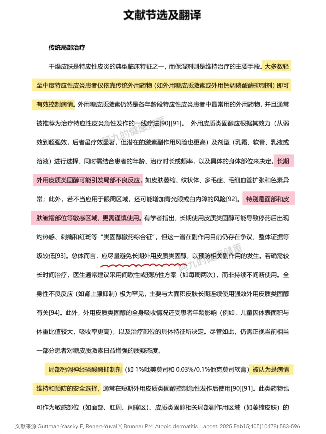 ▫️外用激素:急性期救星,但需在医生指导下按部位、强度使用,避免长期连续用。