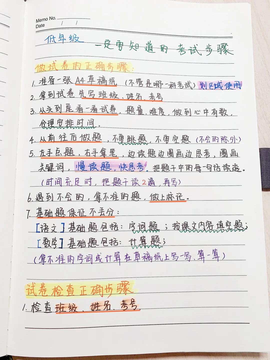 期末考试倒计时~除了告诉孩子认真、细心外, 考前一定要教会孩子:做试卷的正确步骤、试卷检查正确步骤、考前注意事项,! 希望每个孩子都能从从容容面对期末考试,认认真真答题。超越自己你是最棒的❗️
