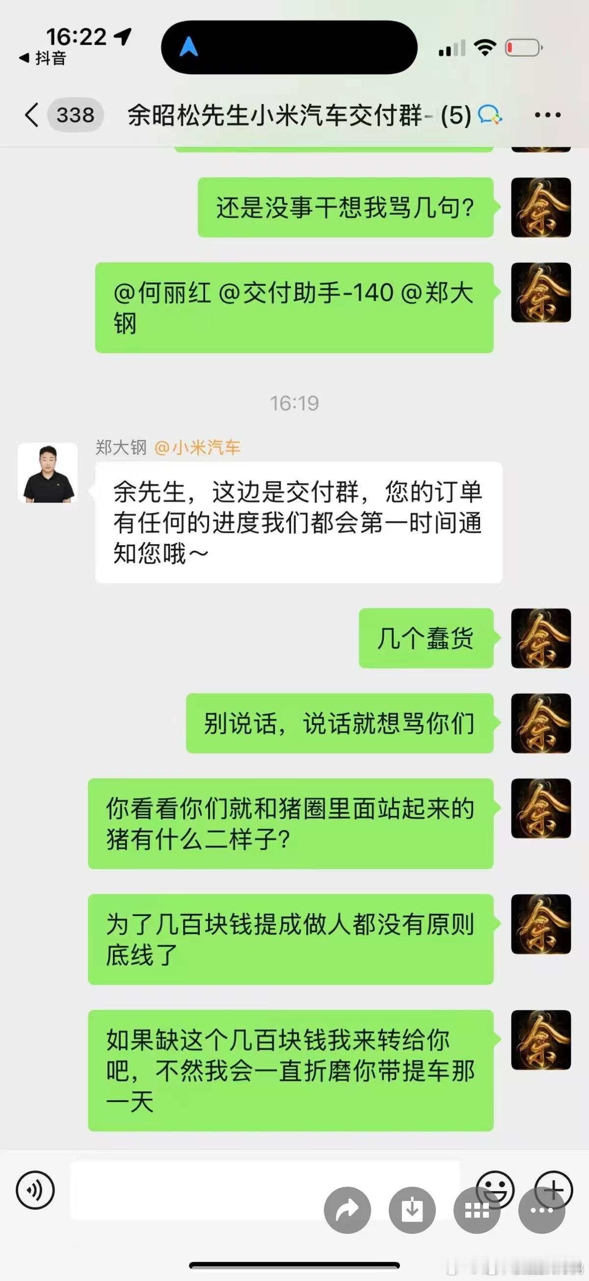 握草,这人这么逆天的吗?只能说活该被报警抓,小米干的漂亮,就这还是人吗?工作没有高低贵贱,每个人只是为了自己的工作而已,但是人家小米销售客客气气的告知他交付的问题,结果这人却疯狂的攻击侮辱人家小米销售,感觉比大熊还离谱,大熊也就说人穷,这人直接侮辱攻击谩骂…