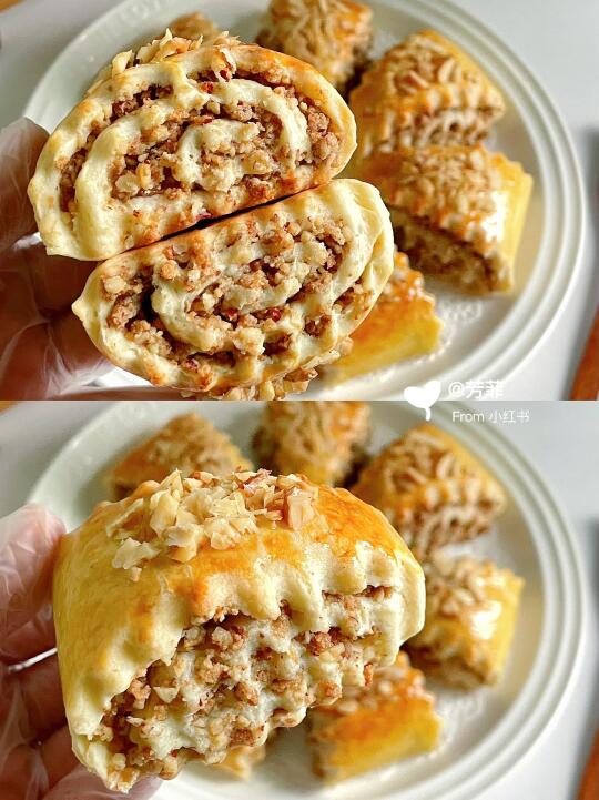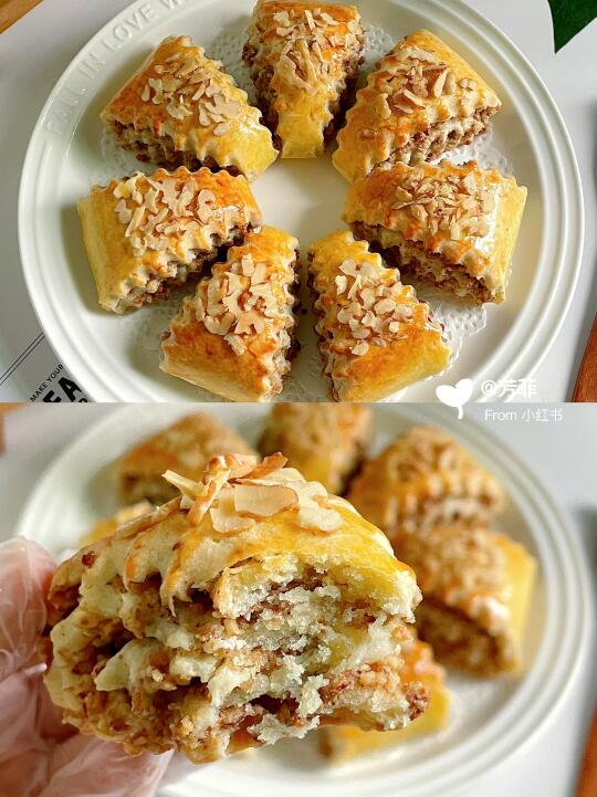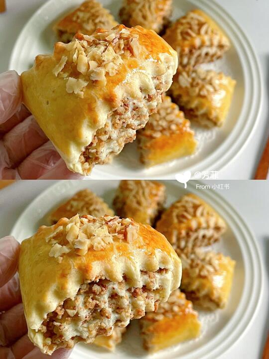 [红包R][红包R]非常香酥的新疆三角核桃卷,外酥里软浓郁的核桃红枣香,好吃到停不下来!♨️出炉秒光盘,被家人夸爆了.真的太好吃啦