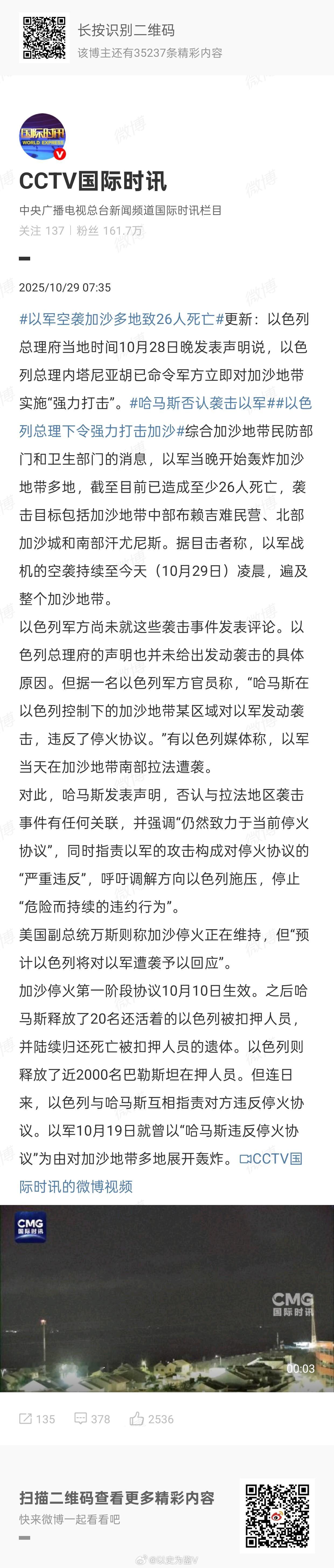 以军对于加沙地区的空袭和轰炸的爆炸声迅速响遍全世界。