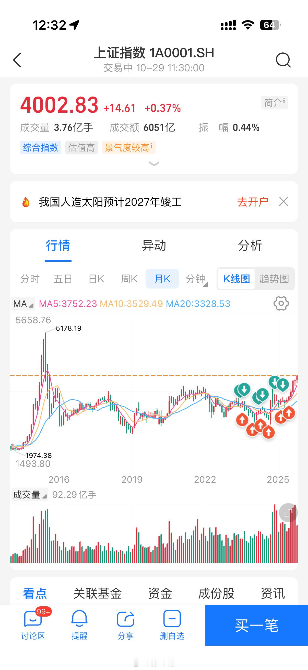 A股上证指数在昨日和今日均上探4000点,查了下,确实上一次在十年前的2015。