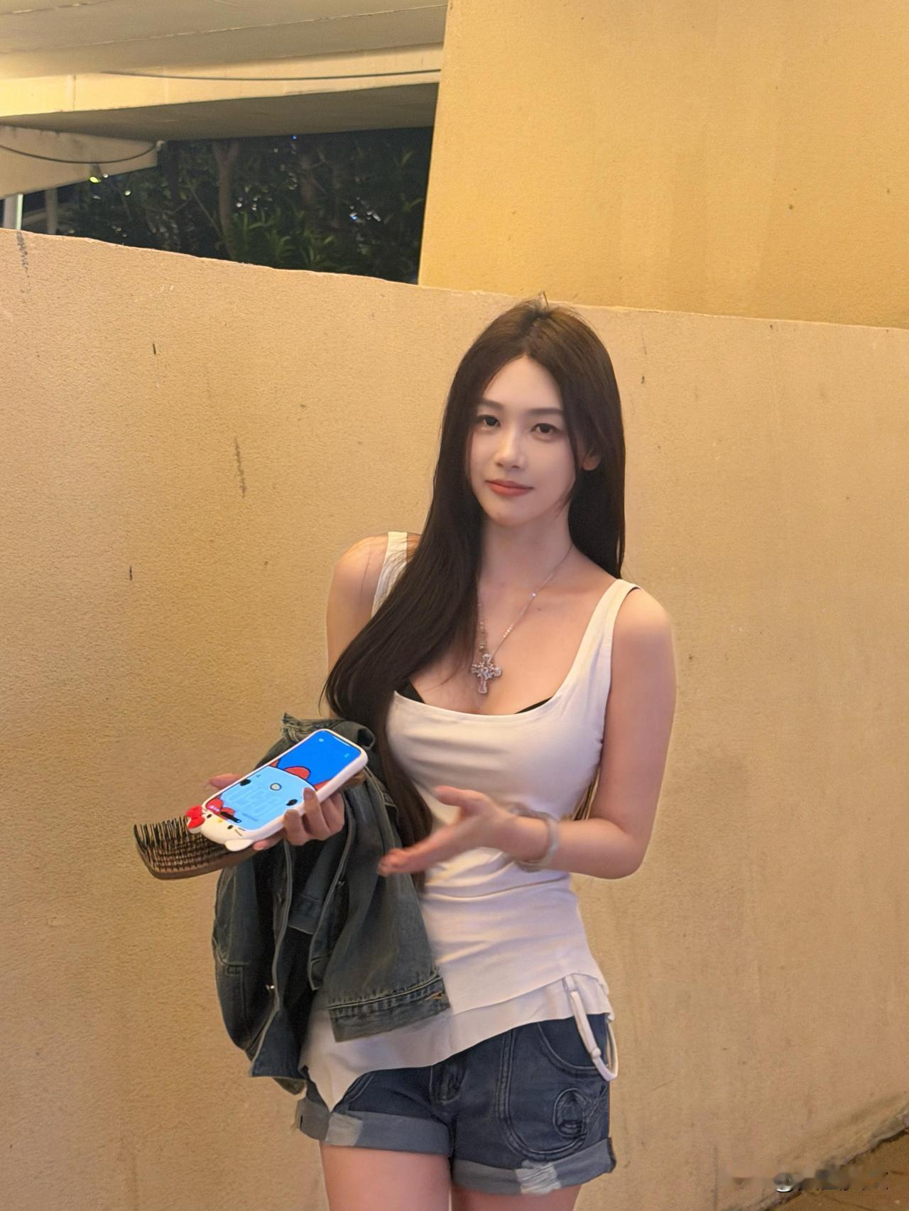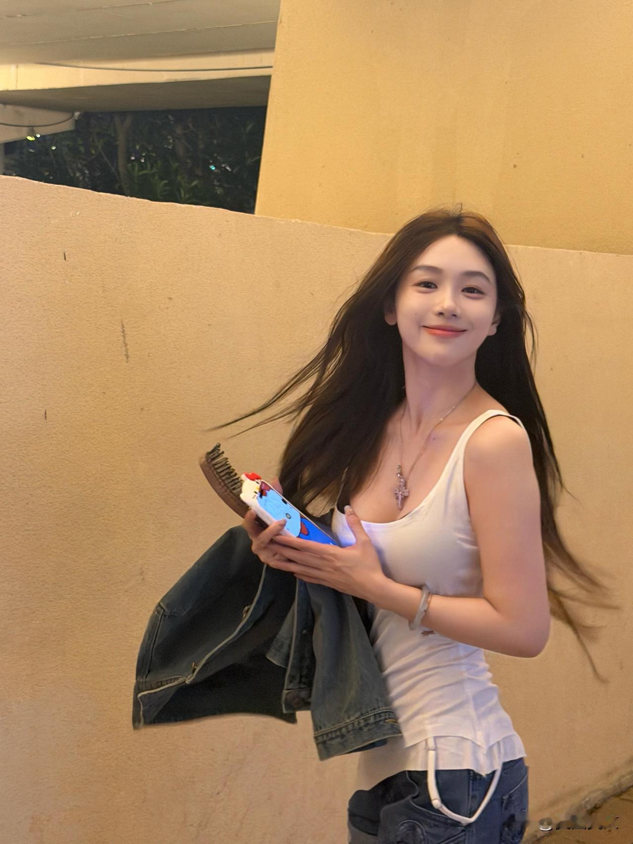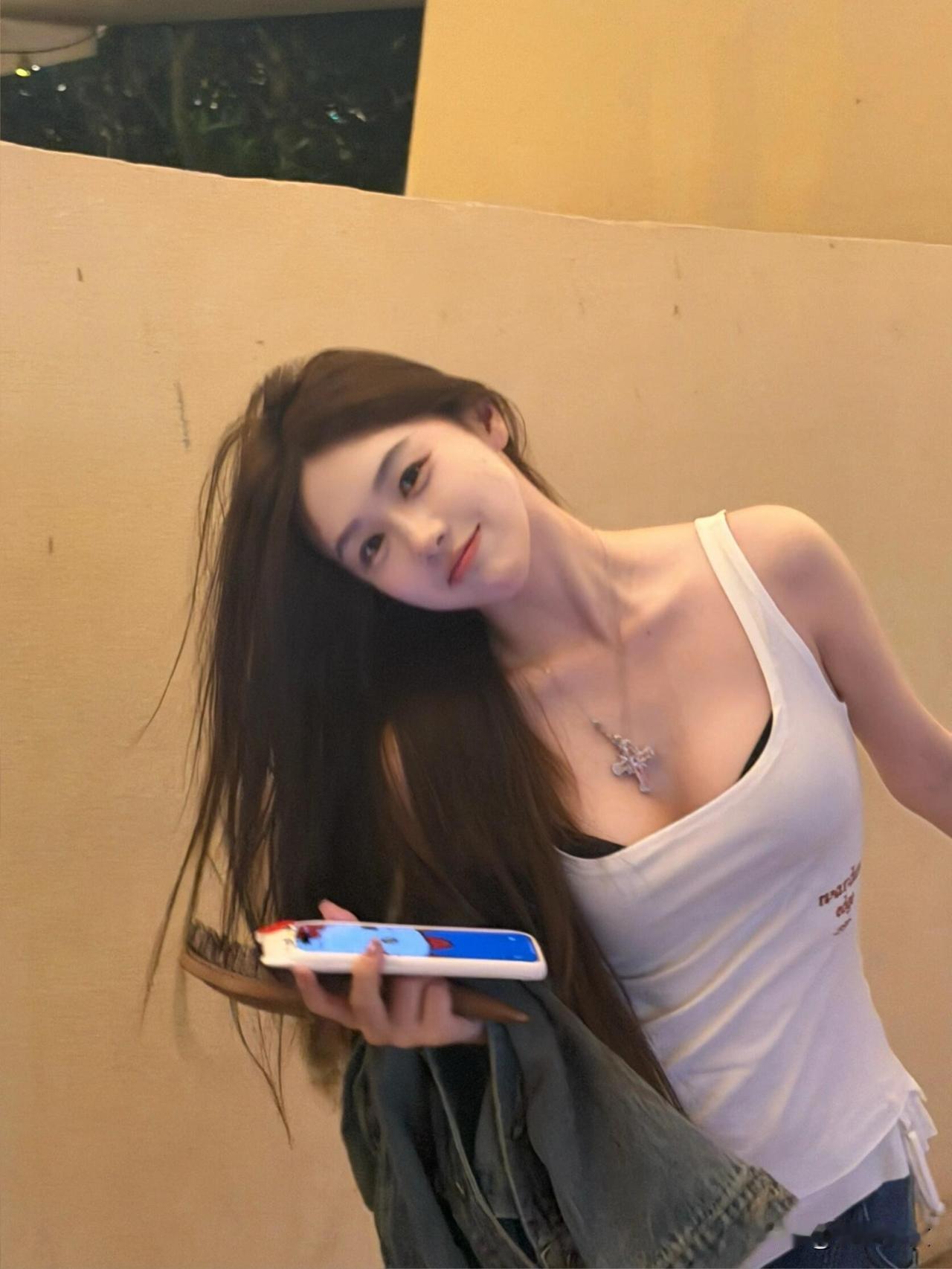 夜晚自拍,温柔微笑,手机相伴,时尚穿搭