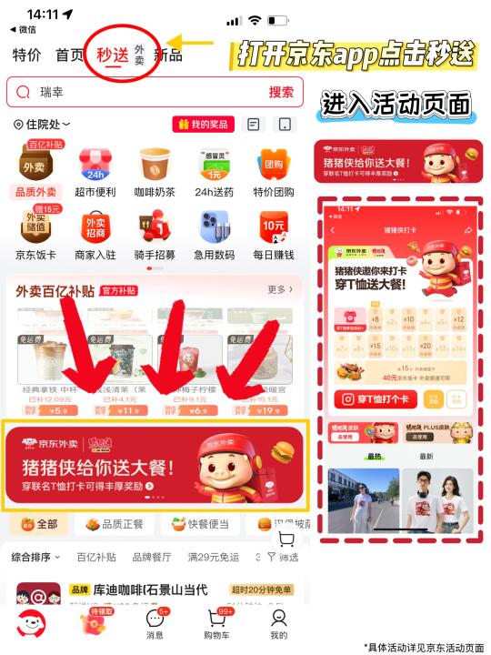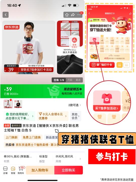 不然送我超级饭卡也行🤪~ 听说我男神猪猪侠已经入职京东外卖了,这波我必须支持啊! 5.6日——6.30期间把我男神T恤穿身上, 去京东app搜索【猪猪侠打卡】,参与打卡最高可赢120元饭卡及240元外卖券超级饭卡!