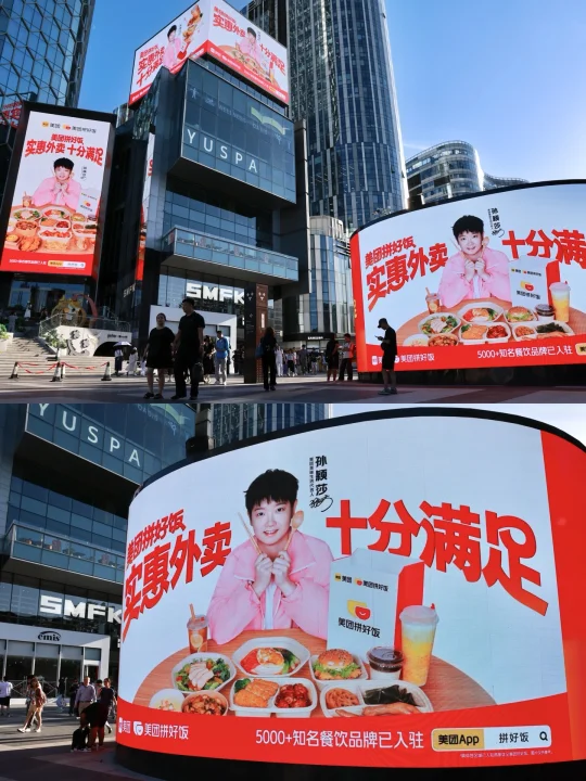 这不刚买完咖啡一抬头,大屏幕里就是一个! 我直接就是一个大合照的动作🤳🏼! 就冲我莎莎宝,也要支持一下美团拼好饭啊!~ 上美团App🔍【孙颖莎】进入盲盒活动页面 6.9元抽品质外卖盲盒,还能赢莎莎周边和亲签哦! (这个周边我是要定了!) 而且现在美团拼好饭也是为了让大家吃上更实惠更满足的外卖 联合5000+知名餐饮入驻,天天都能6.9r吃大牌外卖! 就算每天都吃都不会重复~~ 我一天点三次不过分吧🥳当然,周边我也赢三份~