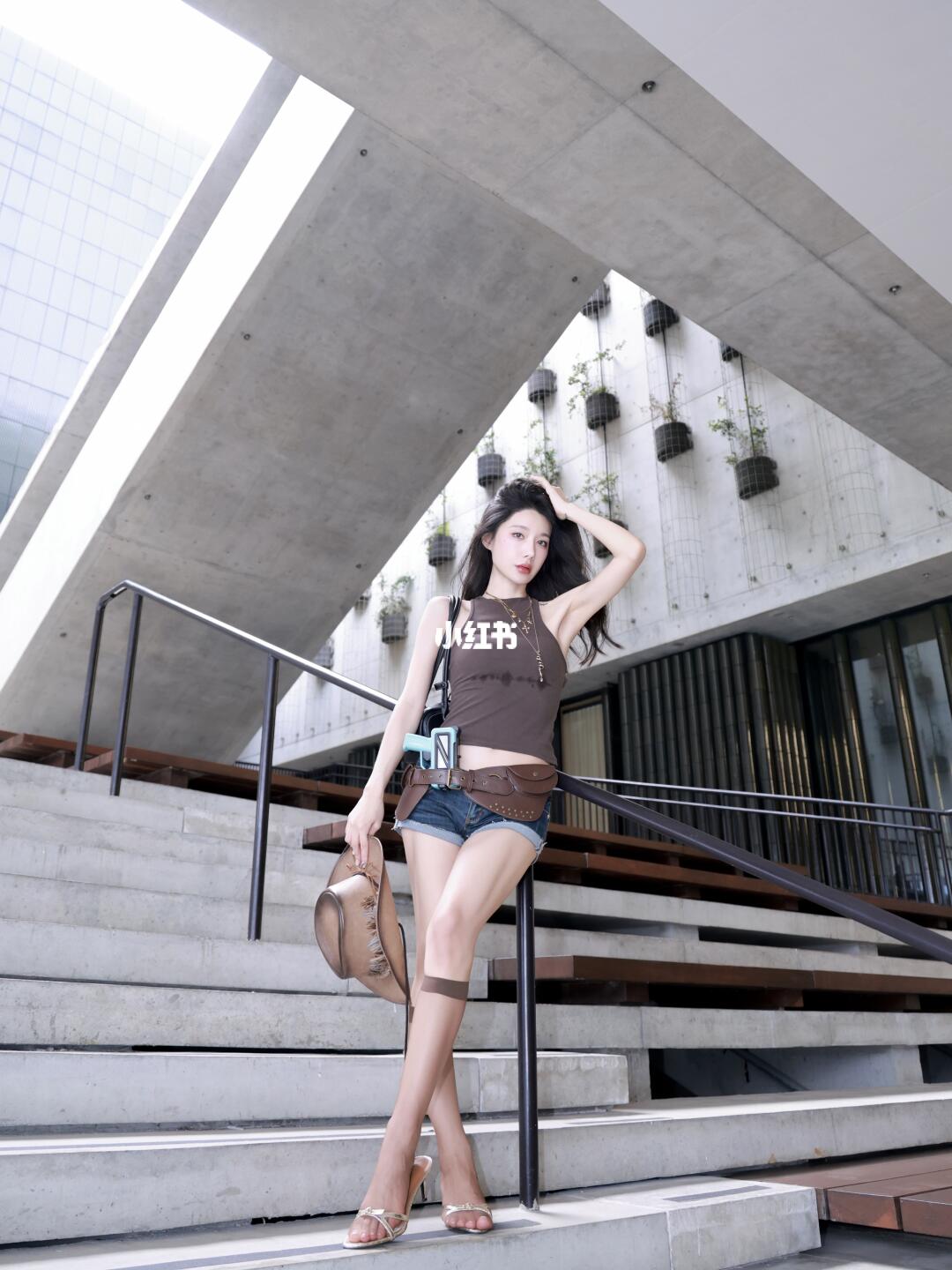 夏日清新穿搭,条纹背心+高腰短裤,轻松自在,元气满满!🌞👗💃
