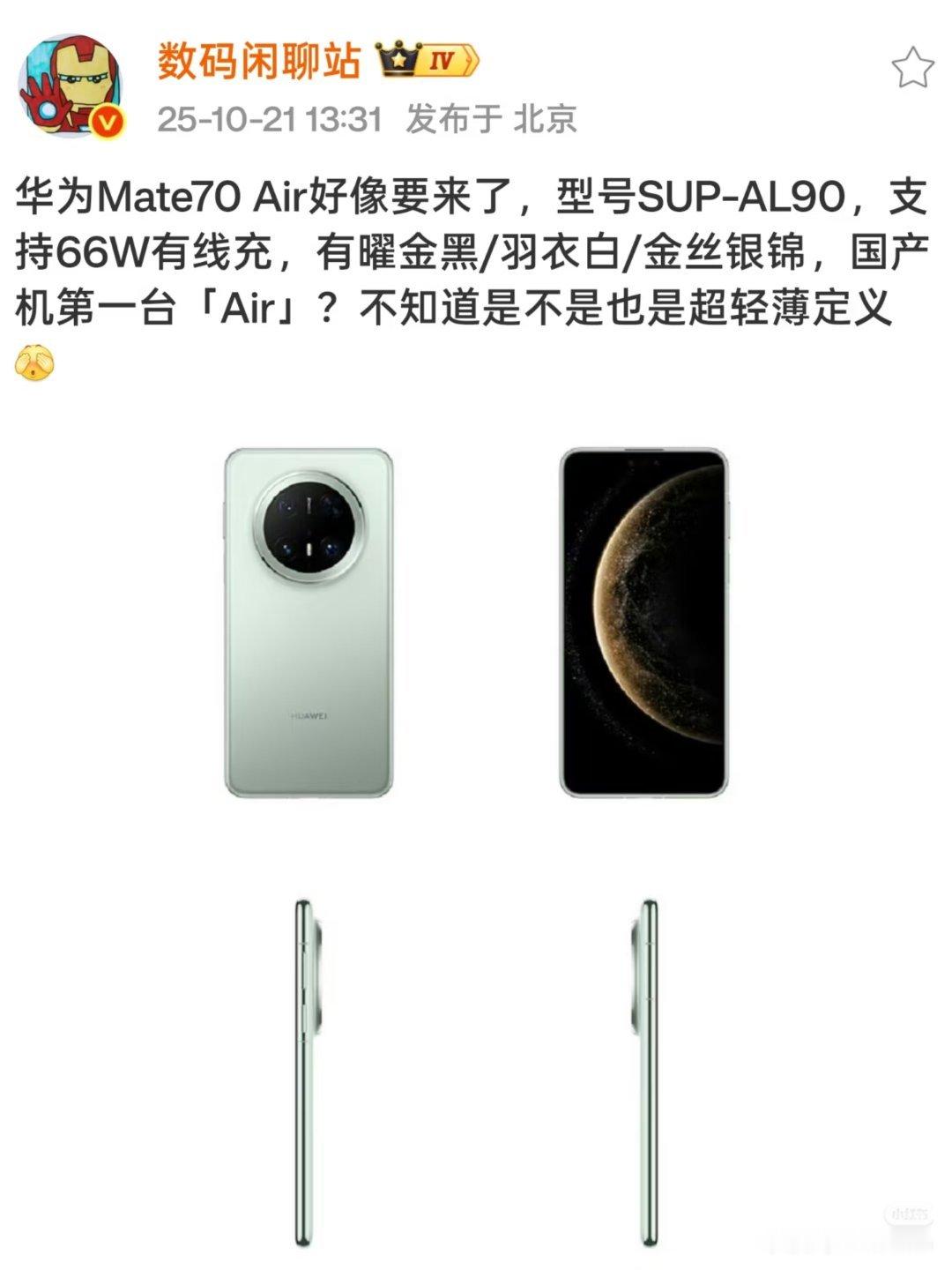 数码闲聊站[超话] 华为Mate70 Air要来了?