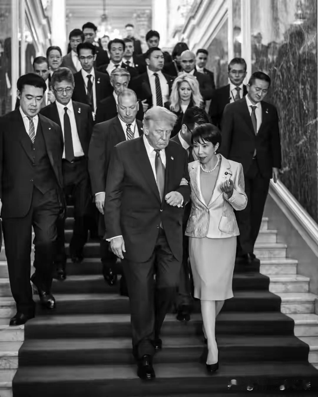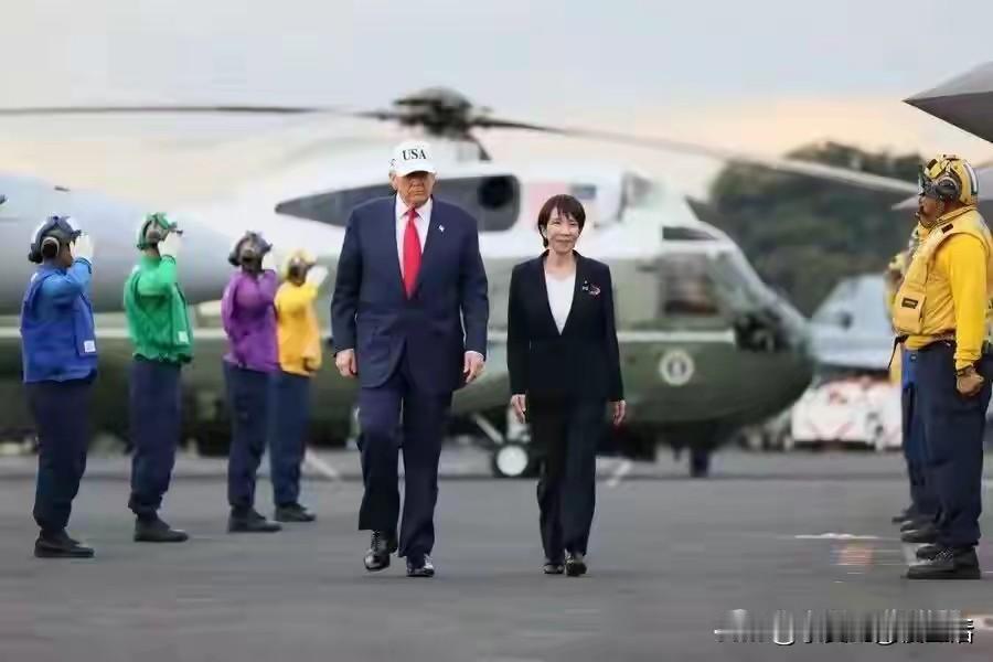 辣眼睛!确实辣眼睛!历史上有很多国际女政客,但是谁也没有日本的第一位女首相这么的可爱,活泼,俏皮。历史上有很多国际男政客,谁也没有美国第二次当选的特朗普总统这么开放,幽默和风趣。 从他们的肢体语言感觉两个似乎不是两个国家的政客,更像是蜜月期的一对情侣。 高市早苗和特朗普搭乘同一架飞机,依偎在特朗普的身边,两个人笑的眼睛眯成一条缝。 高市早苗挽着特朗普的胳膊走路,俯身倾听他的话语,比特朗普的妻子都亲昵。在横须贺的华盛顿航母上,高市早苗在美国一众大兵面前听见特朗普说她是日本第一位伟大的女首相时,她竟然像一个被老父亲宠爱的小女儿一样,高举拳头大叫着,喜悦的跳起来欢呼。高市早苗高兴的陪着特朗普看足球比赛。 高市早苗果然把特朗普哄得兴奋不已,答应高市早苗:无论何时,你有任何疑问,任何疑虑,任何需求,任何需要帮忙的事,只要是我能为日本做到的事,我们都会全力以赴。我们是最强劲的盟友。 有没有点“霸道总裁爱上离婚带娃当保安的我”的感觉!