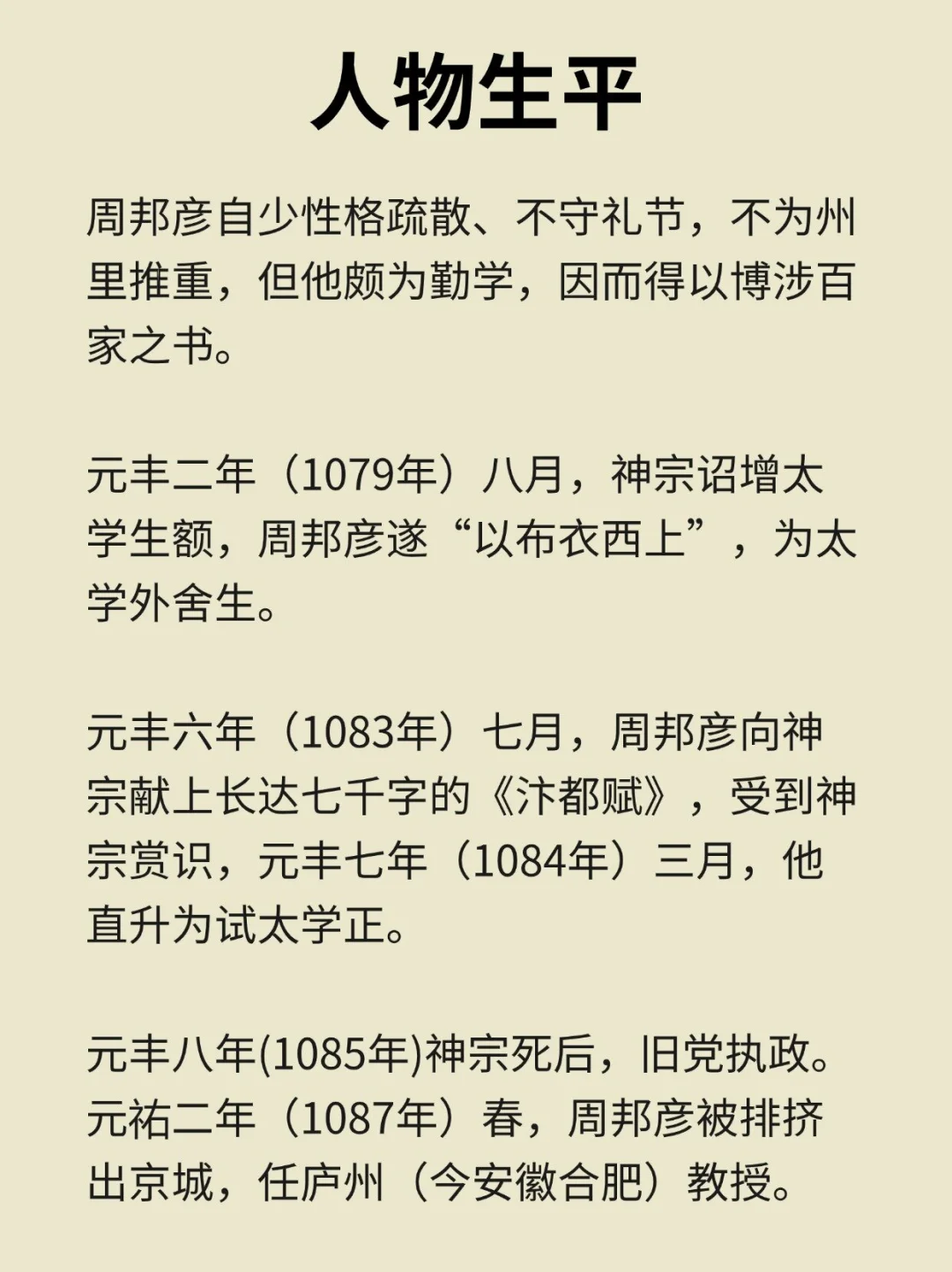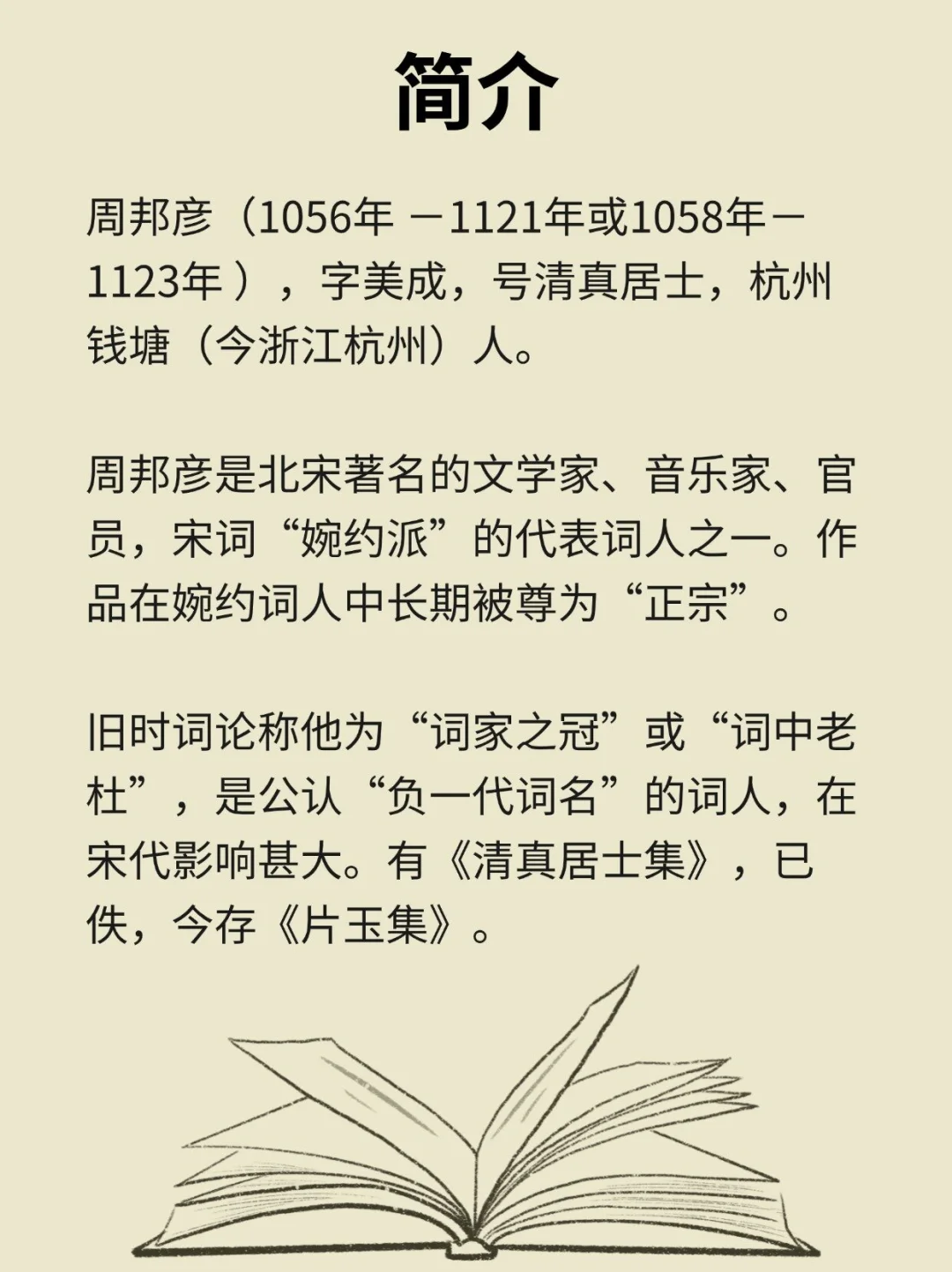 🌸周邦彦是北宋著名的文学家、音乐家、官员 ,宋词“婉约派”的代表词人之一