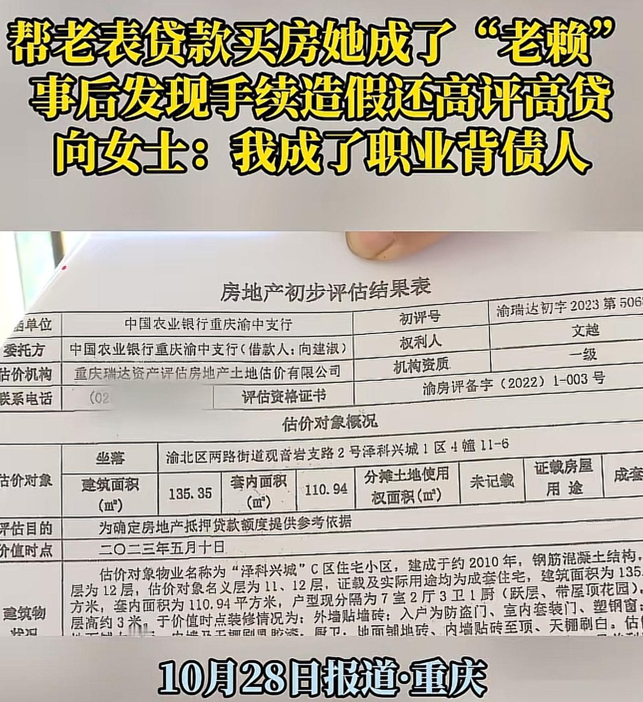 重庆,向女士的表弟周先生由于征信问题无法贷款买房,便找到了向女士,提出以她的名义贷款,向女士也只是出于家庭关系的信任答应了他。没想到,这一善意的帮助,却让她深陷其中,最后不仅欠下巨额债务,还被卷入了金融诈骗的泥潭。 2023年5月,周先生主动找到向女士,声称自己因征信问题无法贷款买房,要求她以自己的名义办理贷款。周先生表示,自己会按时还款,还承诺两年内将房产过户给他或其他人,作为交换,他还提出给向女士1万元的好处费。面对表弟的请求和诱人的好处费,向女士最终同意了。于是,贷款顺利批准,额度为125万元,月供5000元,房产登记在向女士名下。起初,周先生按时还款,但六个月后,他突然停止还款,月供的责任完全落到了向女士身上。为了不影响个人征信,向女士不仅把自己的积蓄用光,还借了6万元向亲友筹集资金,但这仍不足以偿还巨额贷款。最终,贷款逾期,她成了“老赖”,失去了自己的一切。 面对日益严重的债务压力,向女士决定将房产出售以偿还贷款,但在市场调研后她震惊地发现,这套原本花了135万元购置的房产,现在最多只能卖到五六十万元,根本无法覆盖银行贷款。她决定去银行查阅贷款的所有资料,结果惊讶地发现,许多贷款手续并非她本人提供。更为离谱的是,贷款文件中不仅出现了她从未离过婚的“离婚证复印件”,还有一份“收入证明”显示她在江津的一家家具卖场工作,月薪高达1万4千元。然而,向女士从未在该卖场工作过。她立即联系了卖场负责人,结果对方明确表示并不认识她。 随后的调查表明,贷款评估价明显虚高,房产评估公司将房子评估为157万元,而实际市场价远低于此数值。通过伪造资料和虚高评估价,周先生和相关人员成功骗取了银行的贷款。而向女士,则成了这场精心策划的“高评高贷”骗局的“背债人”。向女士并未意识到自己已成为这场复杂金融诈骗的受害者。她当时只提供了身份证、户口本和结婚证,其他的资料,她并不知情。而银行贷款合同中的购房总价为158万元,而真实购房合同上则显示总价仅为135万元,二者相差23万元。 这一切让向女士深感疑虑,她开始怀疑自己完全被蒙蔽。她随后报了警,但问题依旧没有得到解决。根据《刑法》第293条,贷款诈骗罪是指通过伪造经济合同、证明文件等手段,非法占有银行或其他金融机构贷款,且贷款数额较大。在此案件中,周先生及其同伙通过伪造离婚证、虚假的收入证明以及虚高房产评估价,成功骗取银行贷款,符合贷款诈骗罪的构成要件。银行虽然表示按程序操作,但作为金融机构,应对贷款资料的真实性负责。显然,银行在贷款审核中存在重大疏漏。 从《民法典》第148条来看,向女士在不知情的情况下,因受欺诈而实施的民事行为,可以请求法院撤销该合同。她的意思表示并非真实意思,属于受欺诈方,因此向女士有权依法撤销相关贷款合同。 这一案件不仅暴露了银行审核流程中的漏洞,也提醒我们,金融领域的风险防范依然存在不足。在这种情况下,银行的责任不可推卸。银行应当加大对贷款资料真实性的核查力度,确保借款人提交的所有材料都经过严格验证,避免类似的诈骗行为发生。与此同时,家庭成员之间的信任也应有所界限,尤其在涉及金融行为时,必须理性决策,避免因亲情而冲动做出决定。 最终,向女士因为这场骗局陷入困境,不仅失去了自己的房产,还背上了巨额债务,并面临着征信破产的局面。这不仅是一个家庭内部的信任危机,更是对金融行业监管的严峻警示。对于金融消费者来说,任何涉及贷款和房产的行为,都必须理性对待,确保了解所有法律条文和金融细节,避免类似的风险。而对于银行而言,只有加强审查,严格把关,才能减少类似欺诈事件的发生,保障消费者权益,提升金融服务的公信力。