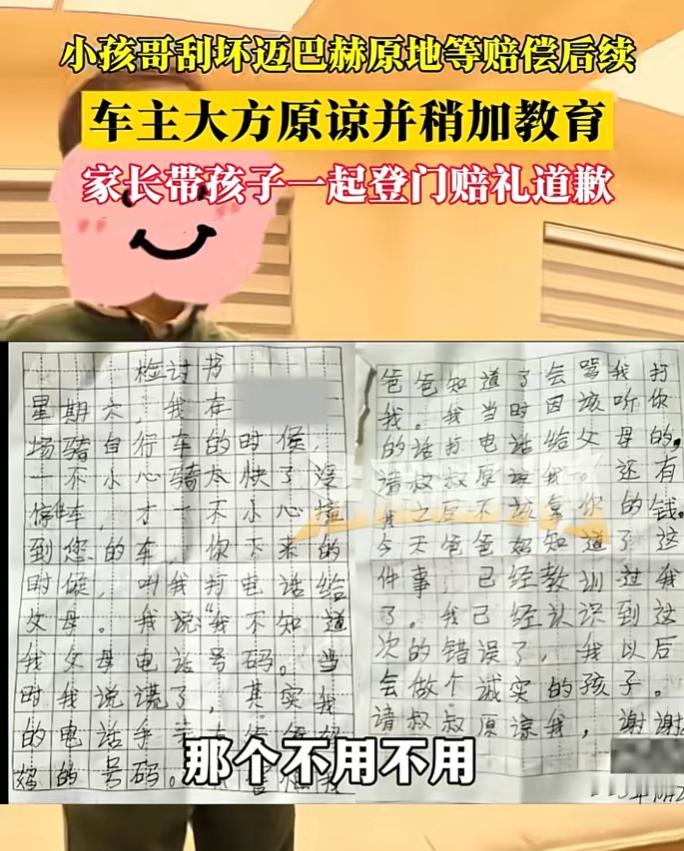近日,广东广州,一位男生在骑车过程中剐蹭到了路边的迈巴赫,男生一直留在原地等待,车主知道后大方的用“跑腿”抵消了补偿,没想到第二天,孩子父亲给了车主意想不到的回报。网友:你能开迈巴赫不是没有道理的。 男孩发现撞到迈巴赫后就一直没有走,车主到了之后男孩主动上前承认了自己的错误,愿意给车主赔钱,而男孩的朋友则一直在旁边冷嘲热讽,嘲讽男孩赔不起钱。 男孩知道自己闯了大祸也非常害怕,知道迈巴赫很贵,自己家要赔很多钱,不过男孩还是强忍着泪水对车主说,自己愿意赔,不管要花多少钱,只要是自己犯下的错误都会承担。 车主看男孩很有担当,就把男孩带到了公司办公室,车主问男孩打算怎么赔,男孩说现在没有多少钱,要不一千吧,车主叹了口气说,那就五块吧。 车主一句话给男孩整懵了,男孩问道,这样的话是不是太亏了。 车主也被男孩逗笑了,给男孩设置了一个小考验,给了男孩一百块钱,让男孩五分钟内下楼买一瓶苏打水上来,只要能完成任务,那五块钱就不要了。 男孩拿上钱就冲下楼了,车主其实也没打算赔,只是想让男孩长一个教训,积攒一个经验,让男孩知道做人做事的道理。 没用五分钟男孩就跑了上来,车主看男孩很守诚信也给他分析起了这件事情,给男孩分析了一遍出事时那些幸灾乐祸的朋友,告诉男孩什么人能交往什么人不能交往,并且告诉了男孩一个道理,出事了就认,就想办法解决,不要徘徊于勇敢与不勇敢之间。 车主本以为事情就过去了,没想到第二天晚上时孩子的父亲带着孩子登门道歉来了,车主赶紧把二人带进了办公室。 孩子父亲说,平时管孩子管的比较严格,孩子回家后也不敢说,还是自己从网上刷视频的时候刷到了,才知道孩子闯了这么大的祸,当晚就让孩子写了道歉信,给送过来。 孩子将道歉信递给了车主,并且深深的朝车主鞠了一躬,车主赶紧把孩子扶起来说,这都是小事,是你的勇敢帮了你。 有网友评论说:敢于承担,不逃避,直面问题,男孩已经胜过很多人了。 还有网友说:像车主这样的人,就应该开迈巴赫。 也有网友说:从孩子不逃跑就能看出来,孩子的家教很好,被善良的人用正确的方式引导,可以说是善良的双向奔赴。 男孩诚意满满,不逃避问题,车主也大度善良,没有追究孩子的责任,反而用一次跑腿给孩子上了很有意义的一课,这种温暖实在让人感动。 希望男孩能记住这一堂课,不管是交友还是面对问题时,都能像今天学到的一样,冷静思考勇敢面对,也祝福车主能赚的盆满钵满。 素材来源:法治进行时
