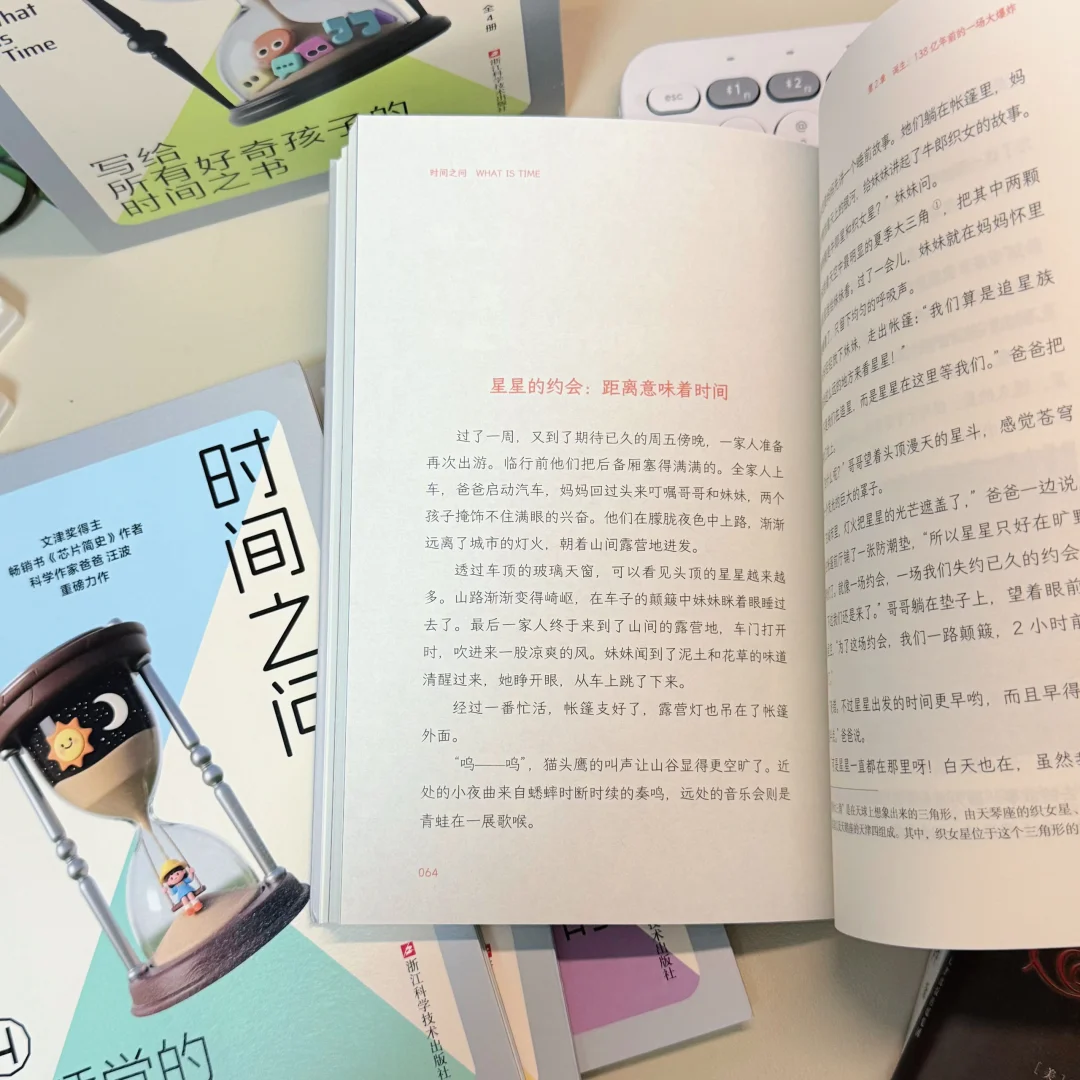 这本书很好玩,里面解答了很多社会快速变革的问题,关于人工智能、量子计算、太空探索等,小时候我们不是十分好奇这些嘛!这本书就是以一家四口的温馨露营探索自然为背景,以孩子一个个为什么,来一点点揭开很多关于世界的谜题,十分有趣,十分富有童心。
