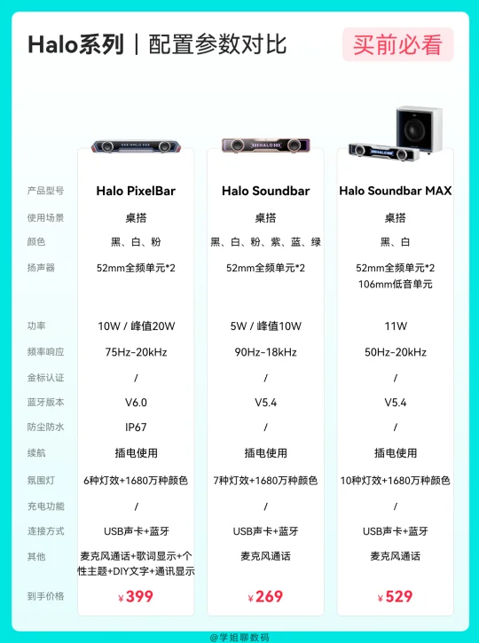 👉🏻 漫步者Halo系列以未来科技美学为核心,透明镜面设计与动态RGB灯效打造出极具冲击力的电竞桌面氛围。学姐推荐Halo PixelBar,赛博深渊造型搭配可自定义屏幕,支持多元主题切换。采用双磁路结构和52mm全频驱动单元,能够针对游戏场景优化声场定位,集成高灵敏度硅麦克风,保障团队语音清晰度。双十一到手低至399元,性价比出色。