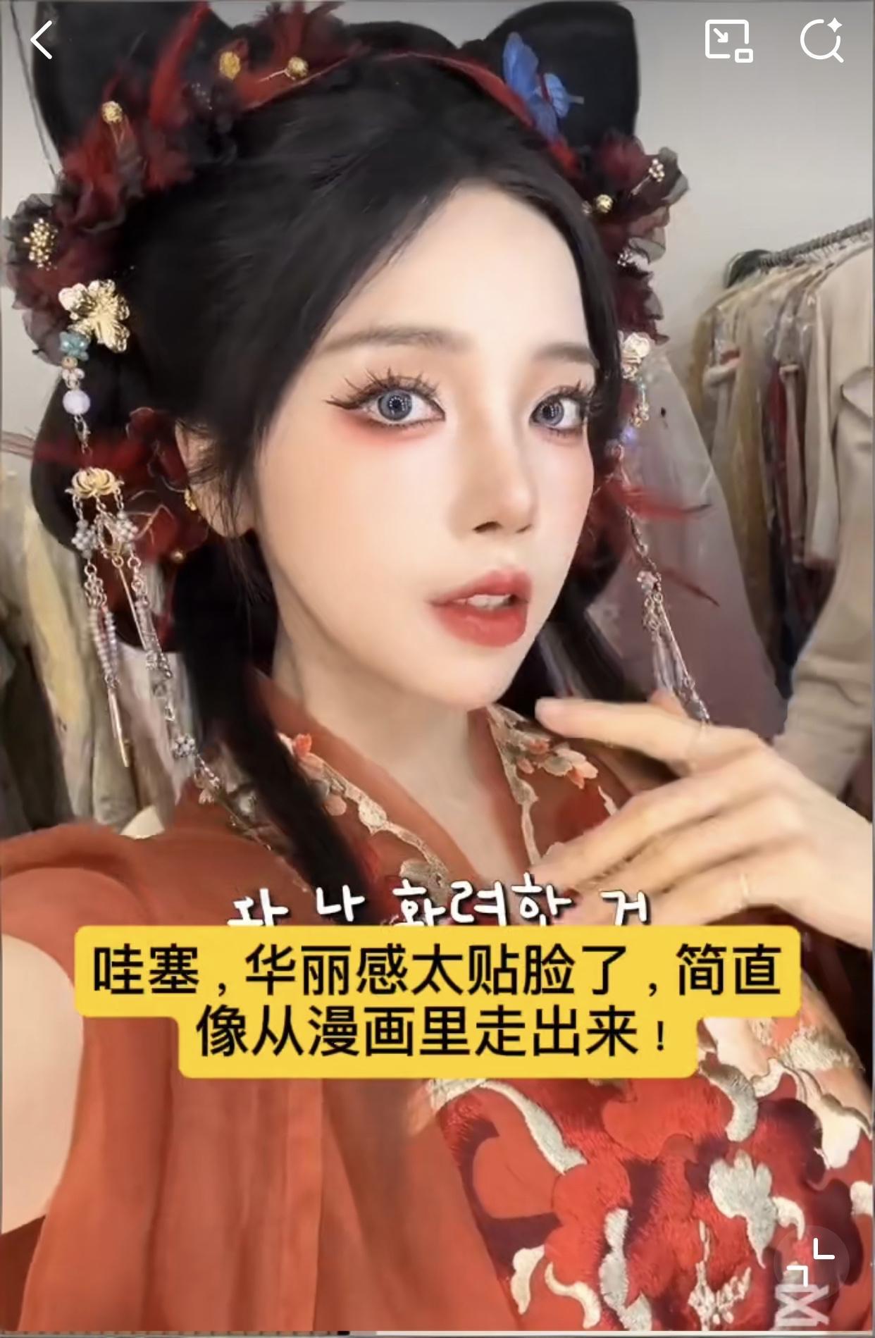 近日一韩国女网红在上海体验中国网红妆和汉服! 视频一经发出,韩国网友直夸,第一次见到有人把这么华丽的风格驾驭这么好的人,可以当中国门面的女明星了! 要我说这网红脸想当明星还是难了点,类似长相网络上一抓一大把,但转头就忘记长啥样了,就算是当短剧女主也够呛,不管漂亮不漂亮,但得有辨识度才行…..