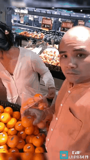 大哥拿个橘子还要比较一下搞笑 女朋友