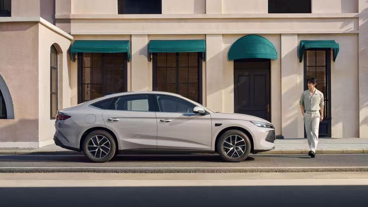 2026款秦L DM-i新增未央灰车色,清透灵动,随光而变,灰色基底上透着一抹天青釉,