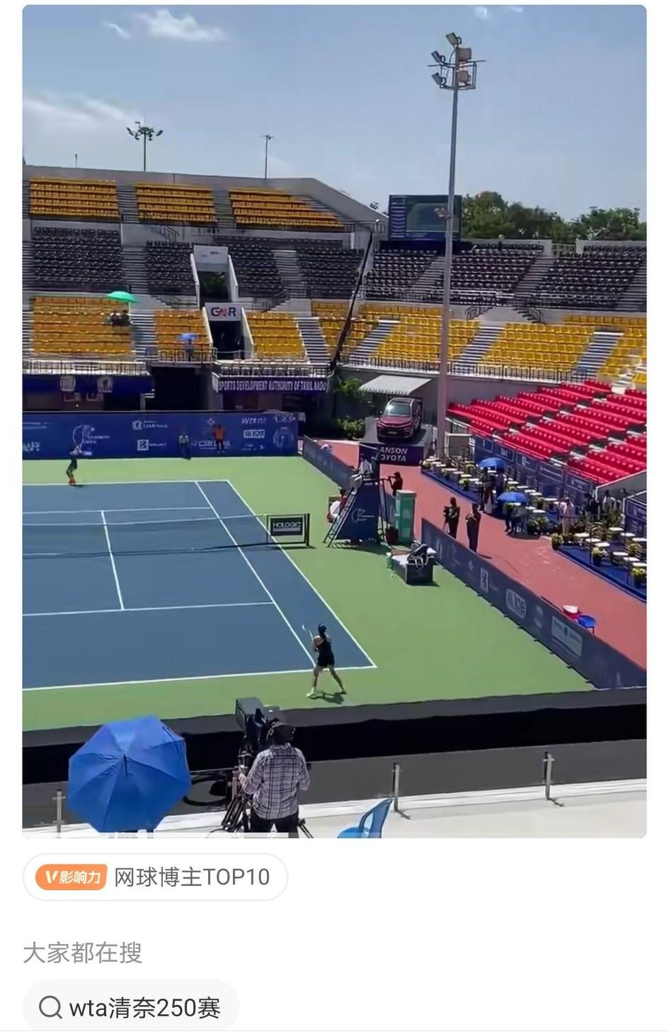 大家都在忙着看WTA九江250赛和香港250赛,其实这周还有一个WTA清奈250赛,前两天因雨水搅局比赛全部取消,今天才开始打第一轮。 虽然谁也别笑话谁,但这个上座率……