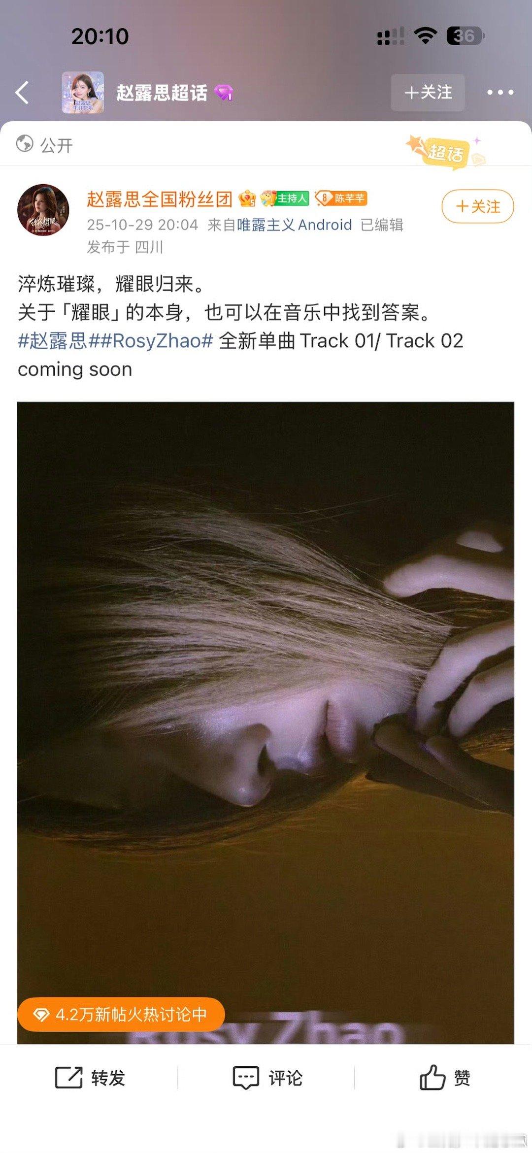 10月28日,赵露思深夜发图,获10W赞,引发网友猜测,这是在为生日复出做准备么