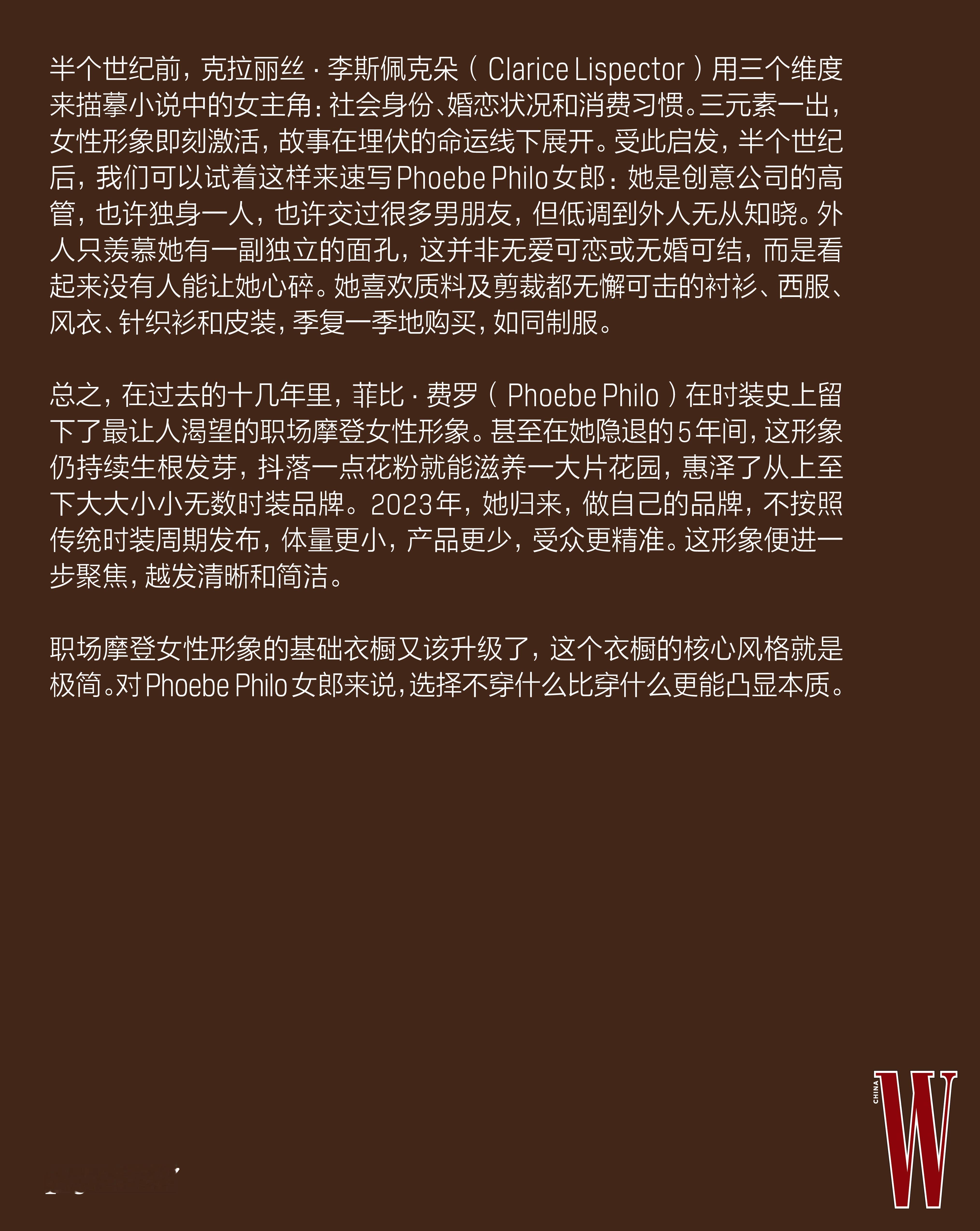光影交织间,每件单品都成为自我表达的载体,将极简主义玩出高级层次感,定义新季时尚风向标。W独家拍摄PhoebePhilo时装大片