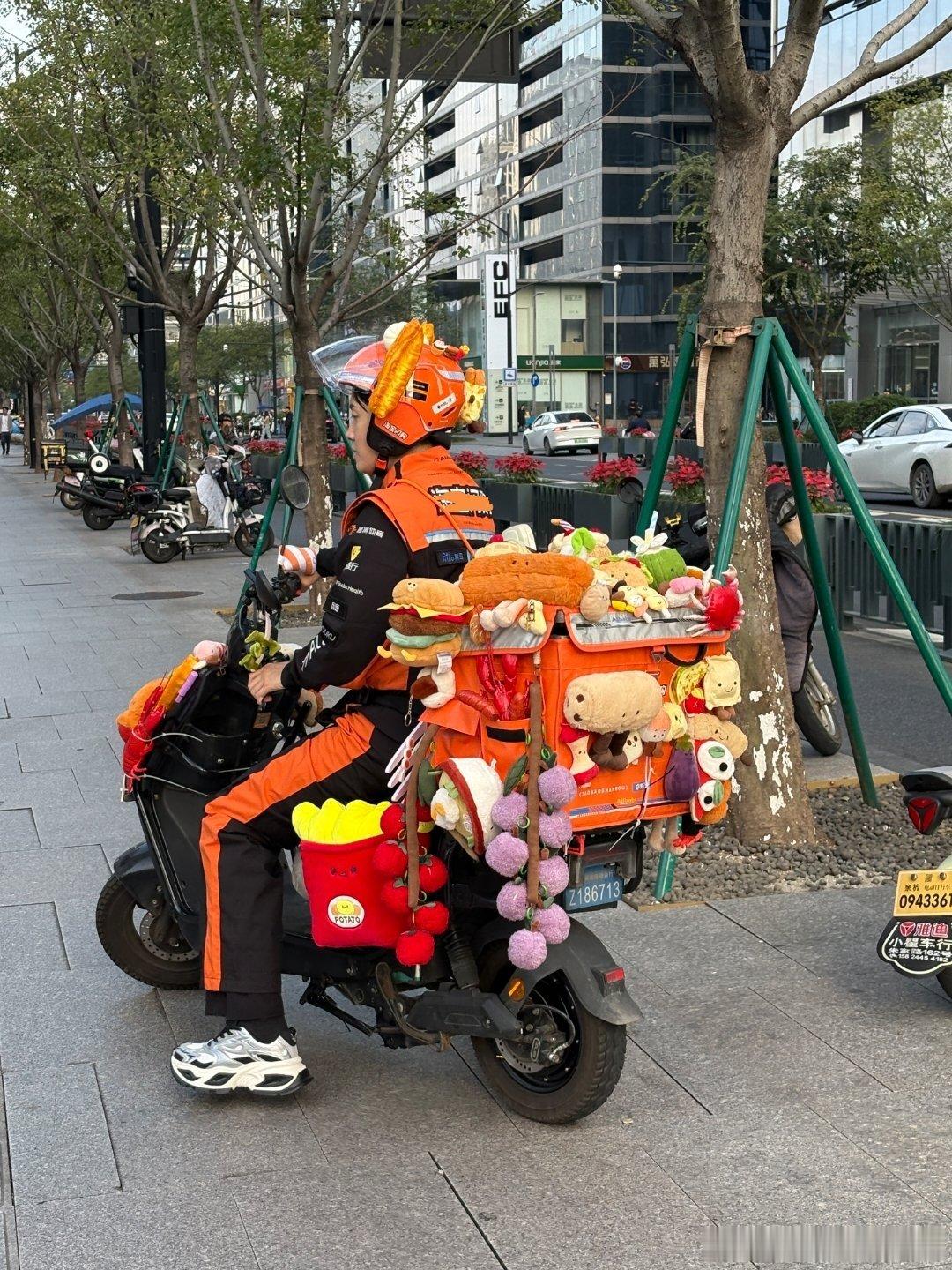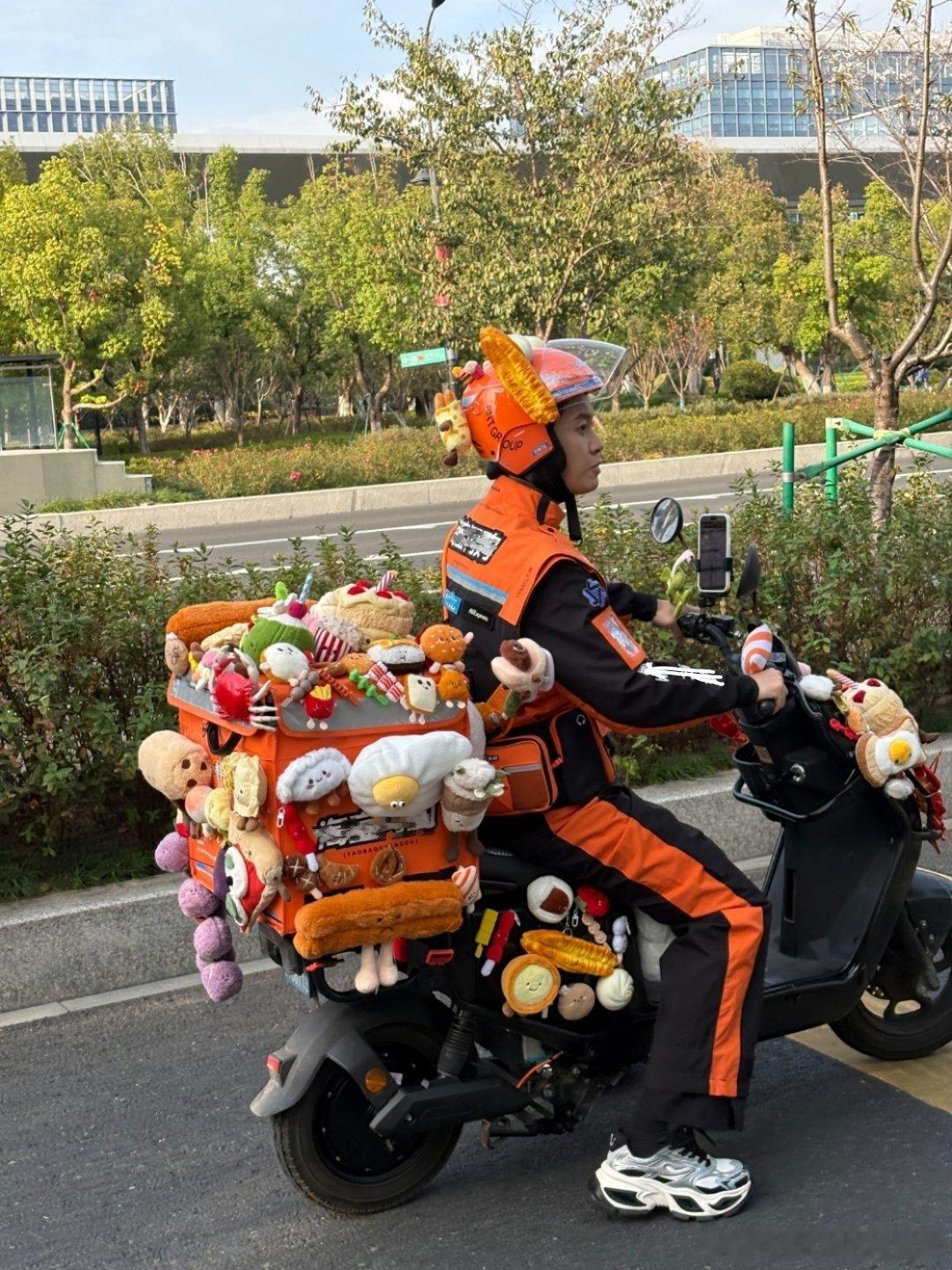 杭州外卖员的精神状态好超前杭州小哥爆改外卖车,装饰了各种各样萌宠手办的🏍️太拉风了吧, jellyrider骑着jellycar送外卖,不得不说杭州小哥太会整活了,这个痛车看的我都馋了!