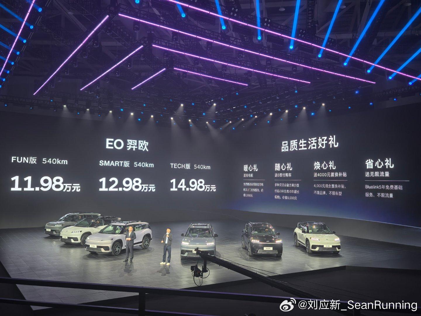 北京现代EO 羿欧倒把钱花在家庭用车的 “实在处”——11.98 万起售,中高配 12.98 万、14.98 万,15 万内合资纯电 SUV 这个价只能说很良心,再次重新诠释新能源车最核心的“用得省、开得久、修得起”。