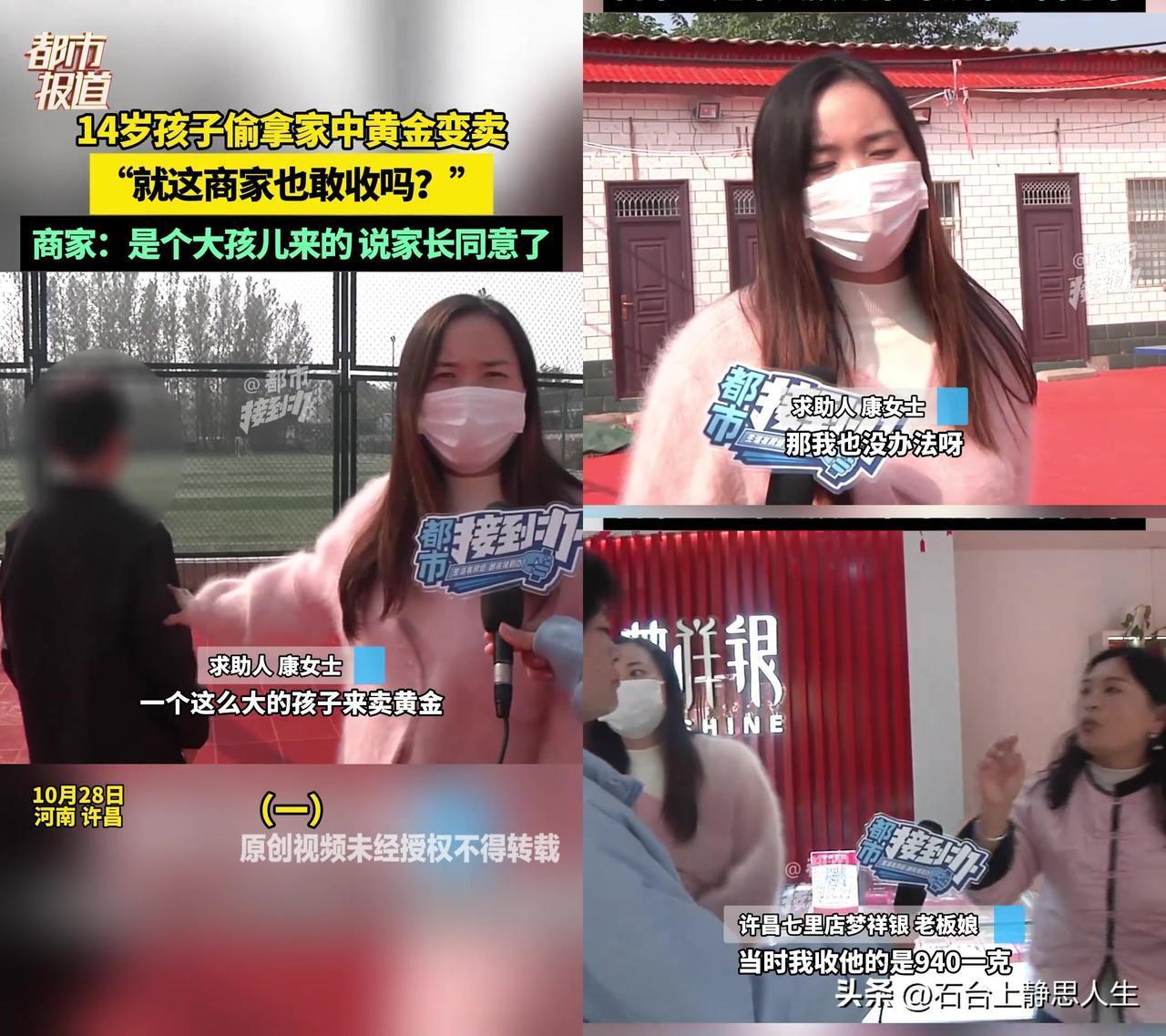 14岁娃偷卖黄金,妈妈骂商家“啥钱都敢挣”,可为啥大家都骂她? 河南许昌的康女士气冲冲找媒体:14岁儿子偷拿家里黄金去卖,跟商家撒谎家长同意,商家就收了。她冲去金店闹,指着人家鼻子吼:“这么大孩子也敢收?啥钱你都敢挣!” 有人说“自己管不好孩子,倒有脸怪别人”,有人说“甩锅比教育孩子积极”,还有人挺商家“人家按流程来,凭啥背锅?” 最绝的是,她压根没反思为啥孩子敢偷拿、敢撒谎,合着教育孩子是别人的事? 咱们身边这种人不少吧?孩子成绩差怪老师,闯祸怪同伴,永远不会说“我没教好”。 教育的第一责任人从来不是商家,是家长啊!与其骂别人“啥钱都敢挣”,不如先问问自己“啥教育都没做”。 你遇到过这种“甩锅型”家长吗?这事你觉得谁该担主要责任?