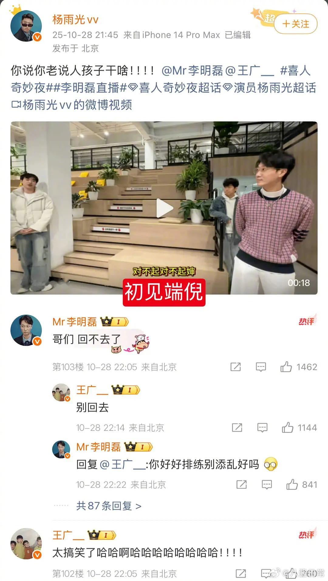 终于看懂了今天喜人团建是怎么回子事喜人奇妙夜杨雨光李明磊