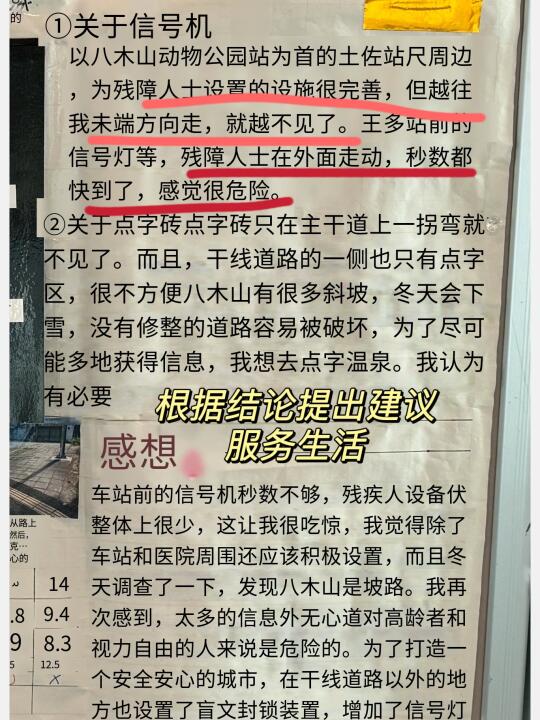 ✅有测评城市是否足够【“残障人士友好”】的地图,并通过自己的探究提出改进的建议