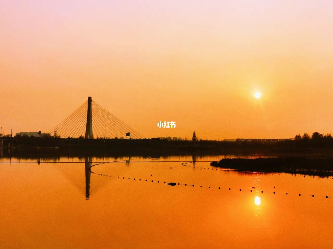 1. 西北门进去的小广场,可以拍夕阳下的湖+远处的斜拉桥