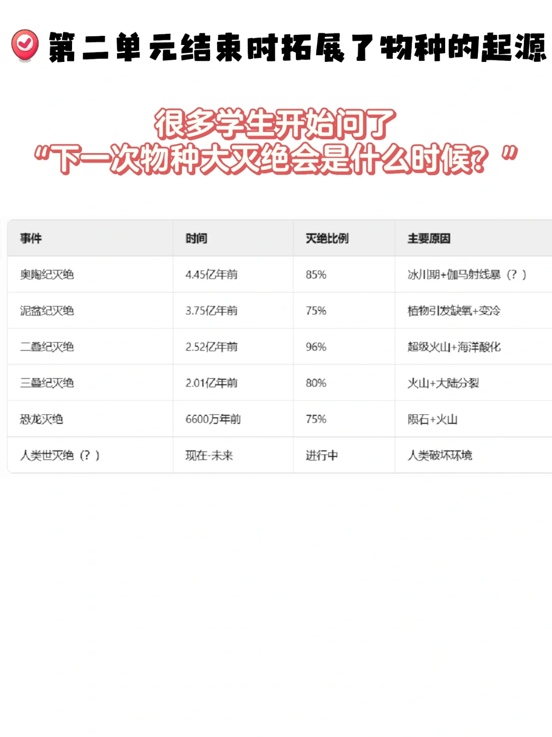 🤣学完第二单元好多学生开始担心【下一次物种大灭绝什么时候/怎么办】,这不送上门的导入素材嘛
