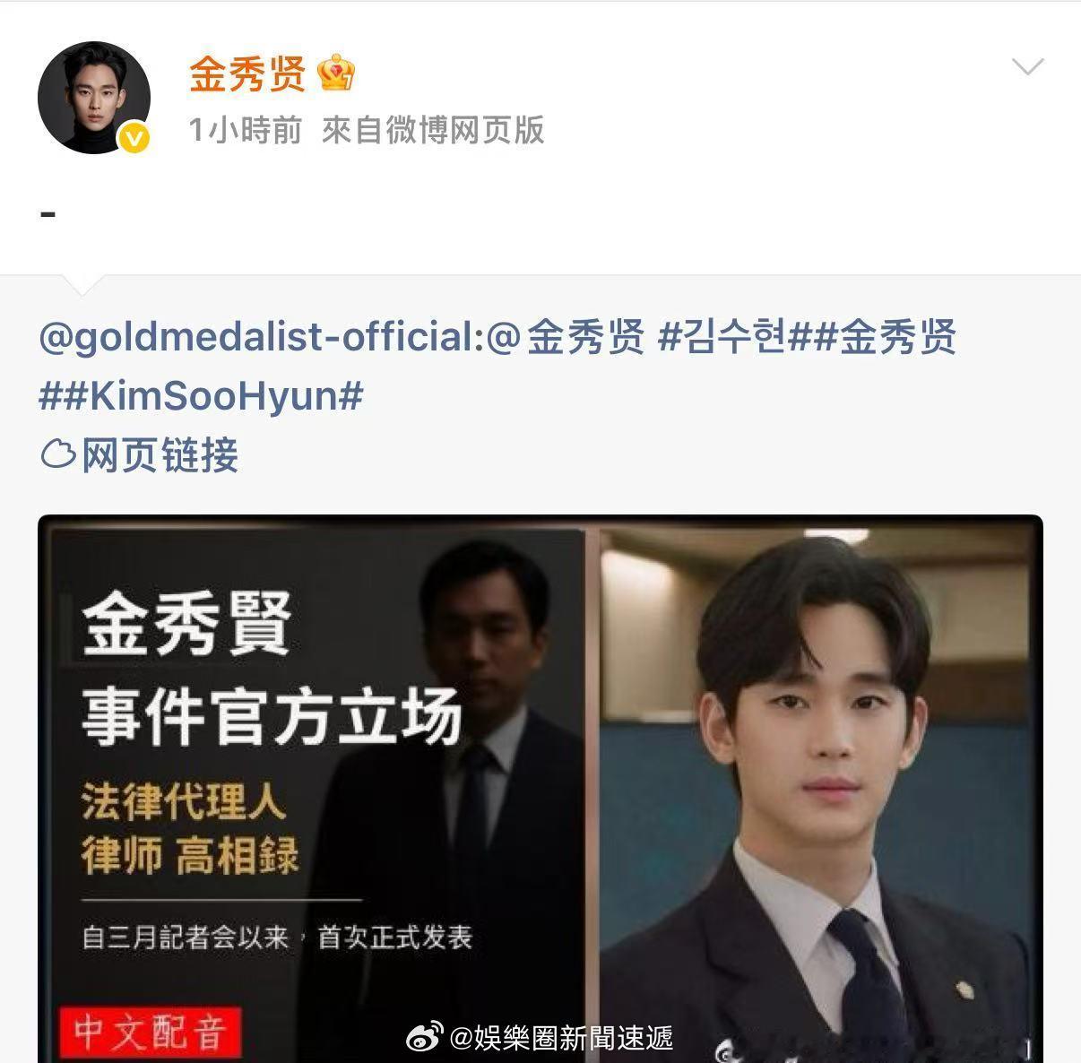 金秀賢官方微博賬號轉發相關微博。然而,現時金秀賢律師的微博內容已顯示不存在..」入內看視頻及全文: