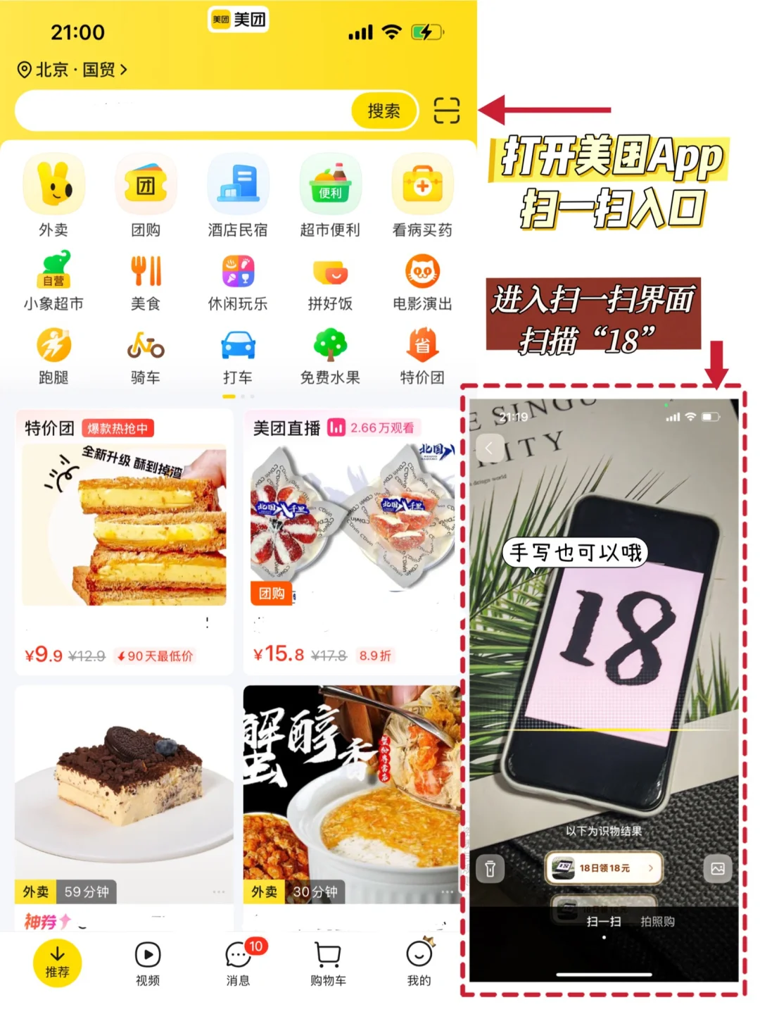 打开美团App,扫任意【18】都可以领18元神券(手写也可以哦)!
