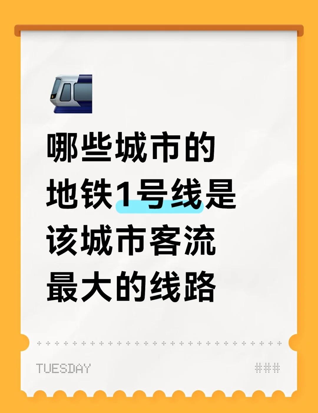 如图 哪些城市的地铁1号线是该城市客流最大的线路呢?它们的客流量有多少呢? 只考虑中国大陆开通地铁的城市,而且以数字命名的线路。地铁