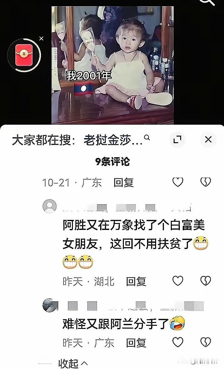 阿胜不用扶贫了,阿胜朋友爆出,阿胜在万象找了个白富美,不知道是真假。 前几天还拉着老挝阿兰规划未来,问人家愿不愿意生3个孩子,说房子装好就同居,转头就被朋友爆出在万象找了白富美?这反转也太让人意外了! 阿兰当初还担心阿胜养不起3个娃,满心欢喜答应相伴,结果感情说变就变。感情里最伤人的不是没承诺,是轻易给了承诺又随便辜负。 真心换真心才是感情的底色,不管是跨国恋还是身边情,不负责任的敷衍终究走不长远。