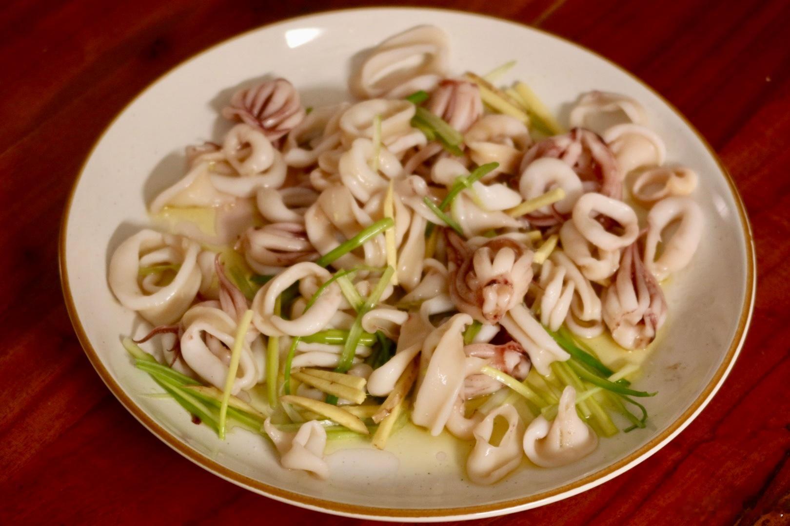 晚餐:白灼野生鱿鱼🦑(新鲜鱿鱼真的好嫩好鲜啊)、娃娃菜猴头菇莲藕汤、黑醋拌白萝卜