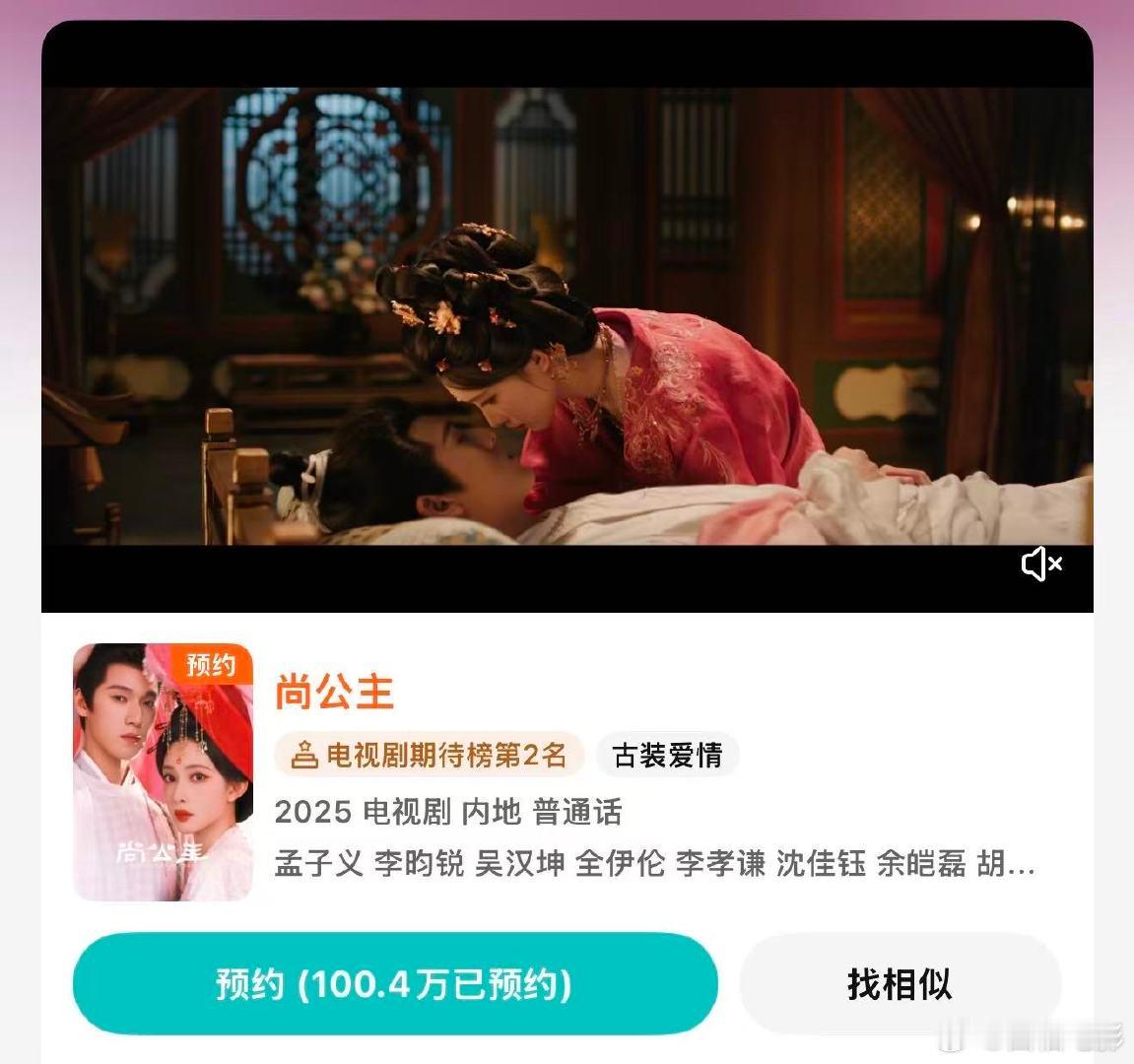 孟子义李昀锐尚公主预约数破百万孟子义李昀锐尚公主预约数破100w 截至2025年10月30日,由领衔主演的古装剧《尚公主》在腾讯视频的站内预约量已正式突破100万。