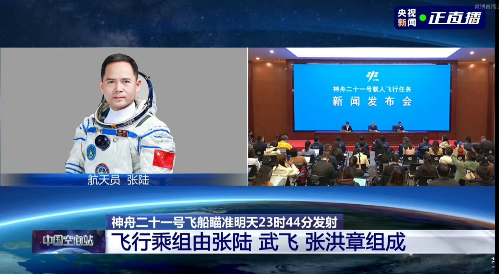 神舟二十一号乘组,将由张陆、武飞、张洪章组成,张陆担任指令长。神21任务发布会