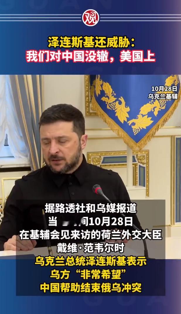 [微风]泽连斯基还威胁:我们对中国没辙,美国上。 当地时间10月28日,乌克兰总统泽连斯基表示,乌方“非常希望”中国帮助结束俄乌冲突。但他同时补充说,他不认为乌克兰有任何直接向中国施压的办法,并暗示希望美国特朗普政府出手。 这番话听起来像是在求援,实际上暴露了乌克兰外交的困境,泽连斯基一边向中国喊话,一边又承认拿中国没办法,最后只能把希望寄托在美国身上。 泽连斯基是在基辅会见荷兰外交大臣时说出这些话的,他当时还强调乌克兰已准备好和谈,但拒绝首先撤军,也不同意在俄罗斯或白俄罗斯领土上进行谈判。 这种条件显然很难让俄罗斯接受,战场上的僵局正慢慢耗尽乌克兰的筹码,泽连斯基的表态更像是一种无奈的外交试探。 他特别提到印度减少进口俄罗斯石油的例子,认为这是美国施压带来的“重要结果”,泽连斯基似乎希望美国能照搬这套方法对付中国,通过谈判让中国减少从俄罗斯进口能源。 这个想法有点天真,中国和俄罗斯的能源合作是两国长期战略的一部分,不是随便就能动摇的。 实际上泽连斯基近来不断配合美西方散布所谓“中国援助俄罗斯”的言论,这些指控根本拿不出实质证据,连美军负责人都承认中国没有向俄罗斯提供军事援助,中方已经多次驳斥这种不实指控,强调在乌克兰问题上始终秉持客观公正立场。 乌克兰的处境确实越来越难,战场压力与日俱增,西方援助却开始出现疲软迹象,欧盟承诺的军事援助没能完全到位,美国国内对继续援助乌克兰也存在分歧。 泽连斯基这次喊话中国,更像是在外交上寻找突破口,试图借助美国的影响力来改变现状。 但泽连斯基可能误判了中美关系的复杂性,美国不太可能为了乌克兰的利益去和中国正面冲突,特朗普政府有自己的算盘,他们更关注美国国内事务和亚太战略,乌克兰问题只是其中一环,想用对付印度那套来对付中国,根本不现实。 中国在乌克兰问题上的立场一直很明确,那就是劝和促谈,中国还向乌克兰提供了人道主义援助,这些都是实实在在的行动。泽连斯基如果把中国的善意当成软弱,那可就大错特错了。 从更深层看,泽连斯基的发言反映了乌克兰外交的局限性。一个小国在大国博弈中确实很难保持平衡,但把全部希望寄托在另一个大国身上也不是明智之举,乌克兰需要的是务实的外交策略,而不是不断升级的言论攻势。 当今国际政治就是这么复杂,一个国家的声音再大,也要看自身的实力和地位,泽连斯基虽然在国际舞台上很活跃,但乌克兰的困境不是靠几场演讲就能解决的,没有坚实的实力做后盾,外交辞令再漂亮也显得苍白无力。 说到底,国际关系还是要回归到实际利益上来,中国在乌克兰问题上有自己的原则和立场,不会因为外界压力就改变,泽连斯基指望美国来施压中国,这步棋恐怕走错了。 读者朋友们,你们觉得泽连斯基这种借美国来施压中国的策略,最终能奏效吗?