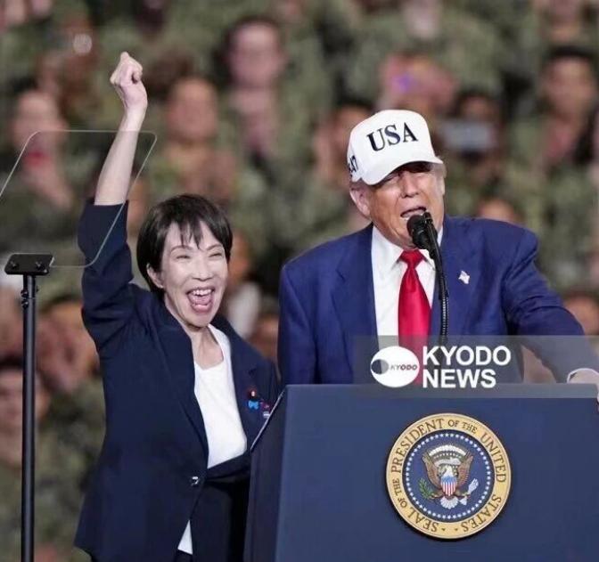 日本民众傻眼了 如果说日本首相和特朗普手拉手还可以理解,那么特朗普搂住她是什么意思? 当地时间10月28日,驻日美军横须贺基地停靠的一艘航母上,人群聚集,媒体的闪光灯不停闪烁,海风吹得旗帜猎猎作响。 特朗普穿着深色西装,走上临时搭建的演讲台时,伸手搂住日本新任首相高市早苗的肩膀,动作亲近而直接。 两人并肩站在台上,特朗普开口谈起美日同盟,语气中带着几分自豪:“我们的友谊,是从二战废墟里一步步走出来的,真正是不打不相识。” 高市早苗身着剪裁得体的深色套装,头发梳得整齐,但她的神态却与竞选时的气势大不相同。 特朗普拉着她往演讲台走时,她微微前倾着身体,肩膀略紧,眼神不时瞟向对方,像是在观察对方的举动,而不是主导全场。 身边的记者捕捉到她双手交叠在前,指尖轻轻摩挲,脸上带着礼貌的微笑,但几乎没有主动开口发言。 当特朗普用夸张的手势讲述美日同盟的重要性时,高市早苗静静站在旁边,微微点头,偶尔调整一下脚步,保持端正姿势。 台下的记者注意到,她的表情中既有官方礼节的严肃,也带着一丝局促——完全看不出竞选期间那个高喊“让日本重回巅峰”、拍胸脯保证“要维护日本利益”的自信保守派政客的气势。 整个会场里,特朗普的声音高亢,手势夸张,似乎全场的焦点都在他身上,而高市早苗则像是紧随其后的影子。 周围的随行官员和媒体工作人员都在窃窃私语,低声点评两人的互动:这与竞选时那个锋芒毕露、立场坚定的女首相判若两人。 特朗普此行显然有着明确的目的:希望日本在防务上更多承担责任,增加军费支出,同时扩大对美国商品的采购。 可高市早苗的表现,却像是把这种依赖和顺从当作“同盟关系应有的姿态”,全程迎合,缺少实质性回应。部分政治评论员直接指出,高市试图通过讨好来换取所谓“自主权”,根本就是不切实际的幻想。 会晤的细节也很明显地印证了这一点。特朗普说话的语气带着理所当然,动作夸张而自信,几乎把场面掌控在手里。 整个会场里,他的意图显而易见:日本越是表现顺从,美国就越会提出更多要求。 事实也确实如此。会晤刚一结束,美国方面就通过媒体和外交渠道表态,希望日本将国防开支提高到国内生产总值(GDP)的3.5%,甚至暗示可以参考北约成员国的5%标准。 这番表态无疑是在向日本施压,推动其进一步加大军备投入,把日本拉向更深的军备竞争漩涡。 整个局面呈现出一种微妙而紧张的力量关系——日本表面上的配合掩盖不了背后的压力与潜在风险。
