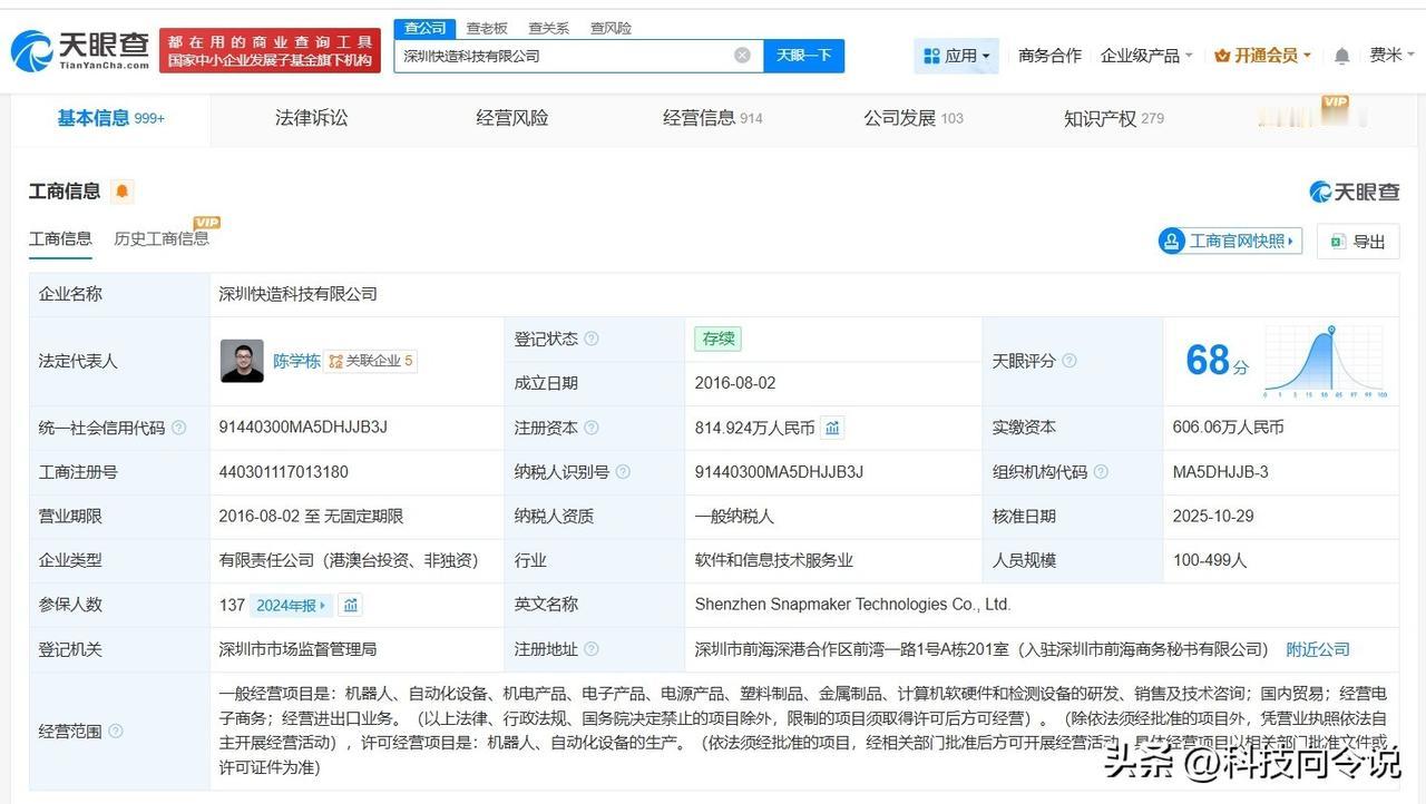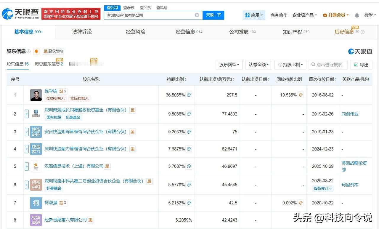【美团等入股3D打印机研发商Snapmaker】 天眼查App显示,近日,Snapmaker关联公司深圳快造科技有限公司发生工商变更,新增美团旗下汉海信息技术(上海)有限公司、成都龙珠股权投资基金合伙企业(有限合伙)等为股东,同时注册资本由约704.5万人民币增至约814.9万人民币。 该公司成立于2016年8月,法定代表人为陈学栋,经营范围包括机器人、自动化设备、机电产品、电子产品、电源产品、塑料制品、金属制品、计算机软硬件和检测设备的研发、销售及技术咨询等,现由陈学栋、深圳南海成长同赢股权投资基金(有限合伙)及上述新增股东等共同持股。官网显示,该公司是一家集研发、生产和销售桌面级多功能3D打印机的科技公司。 天眼查信息: