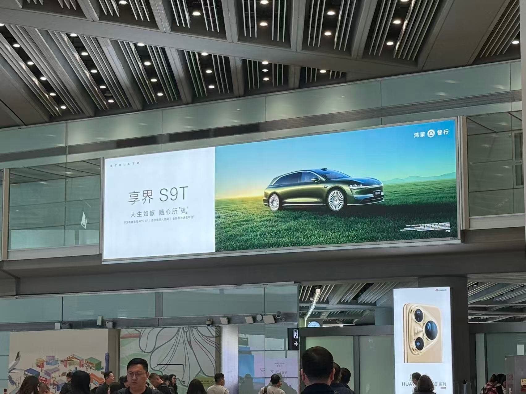 首都机场满满的鸿蒙执行广告,9系引领!问界M9和享界S9T。打卡一下。