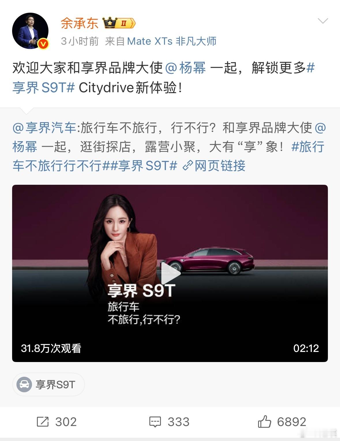 杨幂和沈腾成为享界品牌大使[666]余承东官宣享界品牌大使