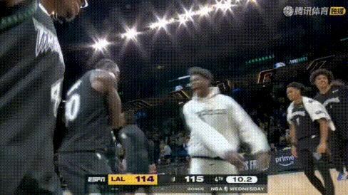 里夫斯压哨绝杀!疯癫华子安静如鸡。 湖人3节就领先20分(全场领先47分50秒);可惜森林狼打出一波14:2,兰德尔10秒反超后华子跟他拉手庆祝(图3-4)。 可惜庆祝早了,里夫斯压哨绝杀后他在说啥呢?(图2) 里夫斯真硬:3节末被8:0后他止血,末节也3分止血(图5-6)。