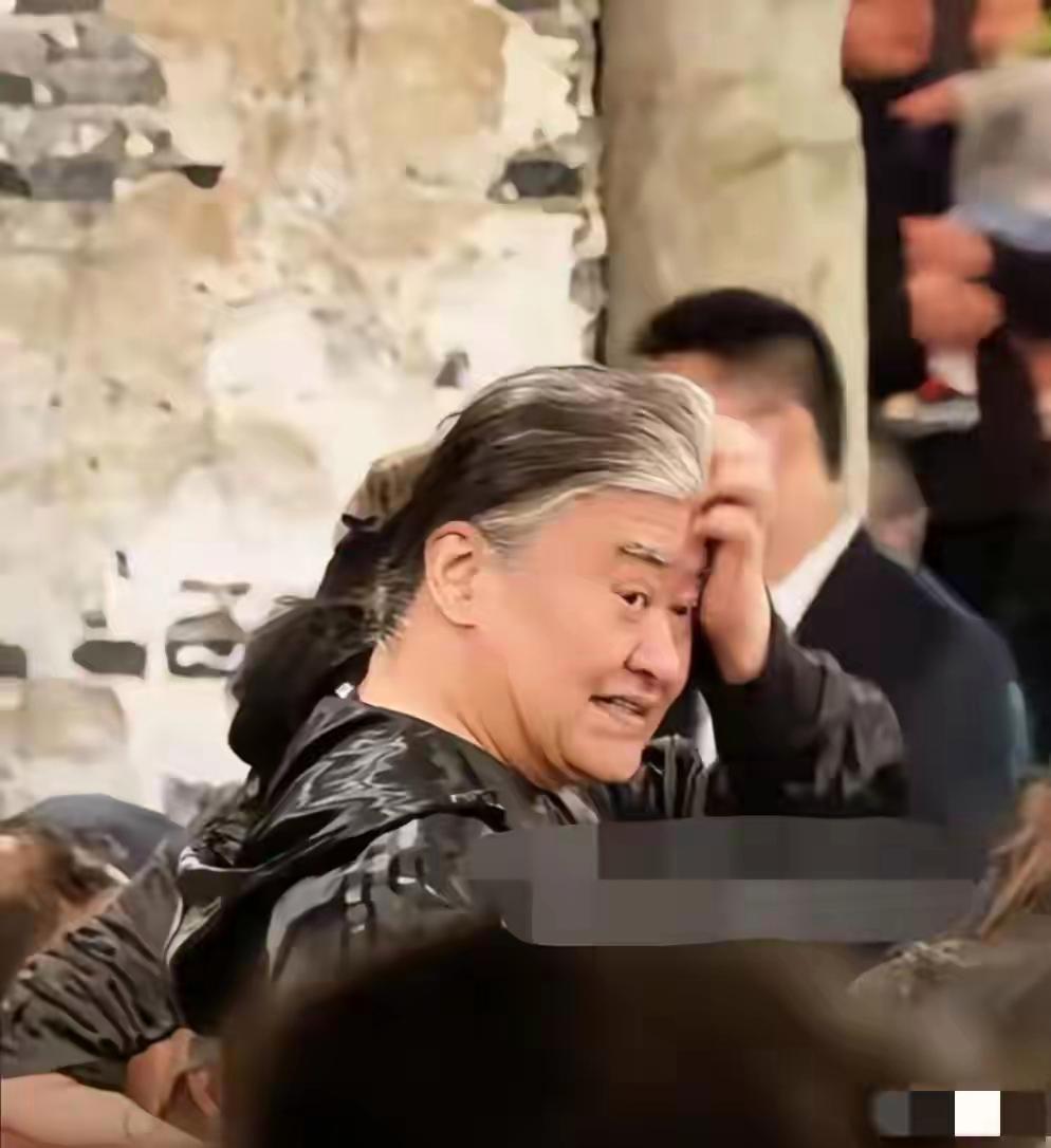 刘欢近照,扎低马尾辫,头条花白,眼皮浮肿,颈纹很深,肉眼看老了不少。